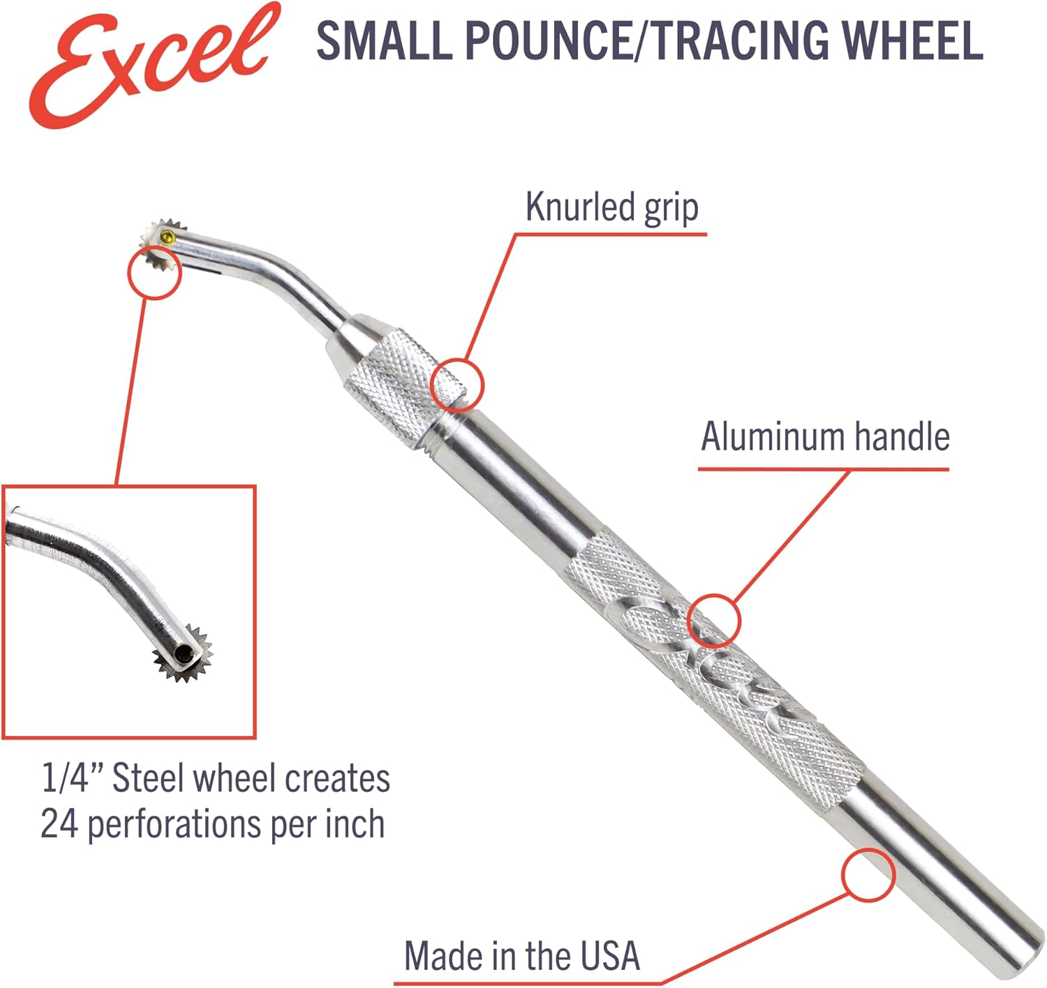 Excel Blades Pounce Wheel - 1/4-Inch Stainless Steel Tracing, Perforating, Cutting, Sewing, Quilting & Embossing Tool