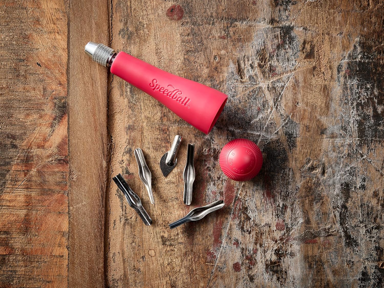 Speedball Block Printing Tool Set (4-Piece) - Includes Linocut Carving Tool, Roller Brayer, Printmaking Baren, and Bench Hook - Made in USA