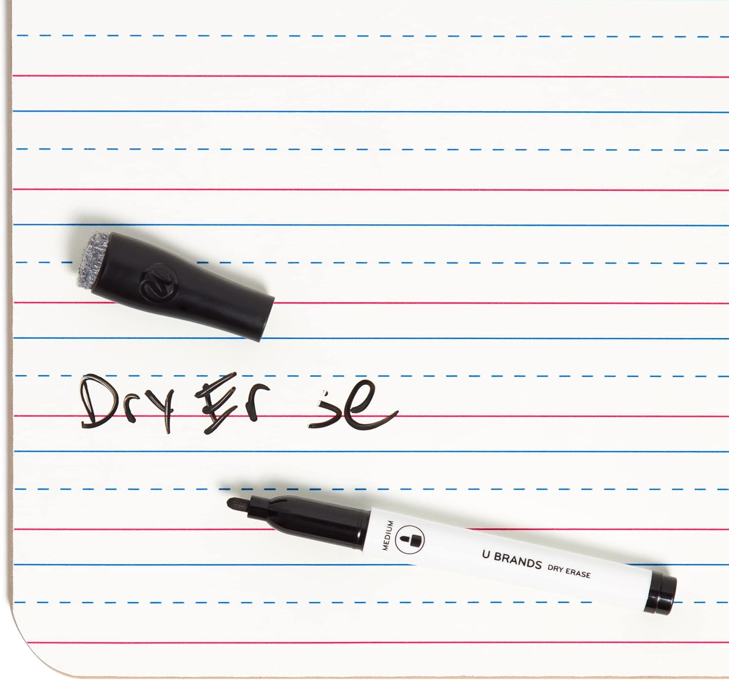- The dual sided dry erase board feature makes your life paperless; Side one is lined to practice writing block letters or cursive, and side two is a blank