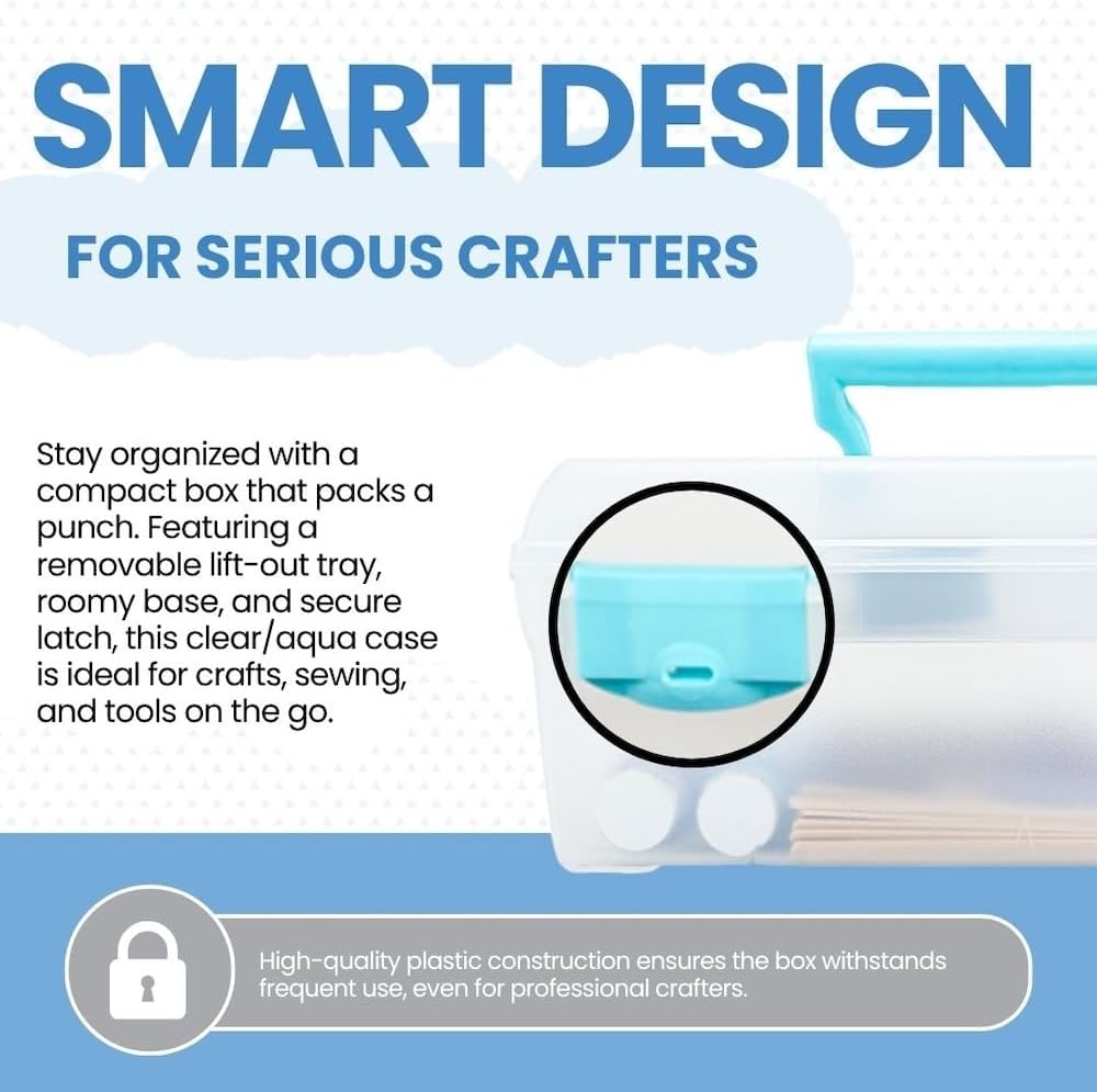 ArtBin 6937AG Essentials Lift-Out Tray Box, Portable Art & Craft Organizer with Handle and Tray, Clear/Aqua