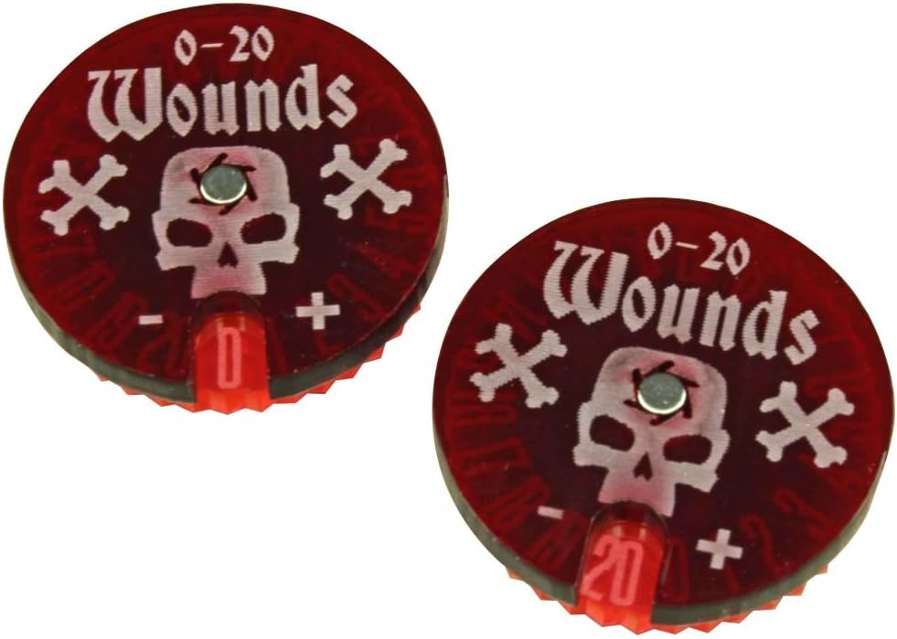 - Keep track of wounds, health, or life points from 0 to 20 with this easy-to-read, rotating dial. Whether deep into a high-stakes skirmish or navigating an epic RPG campaign, this tracker eliminates the need for messy paper notes or unreliable memory. Simply twist the dial to update your stats in real-time, keeping your focus on the strategy—not the bookkeeping.