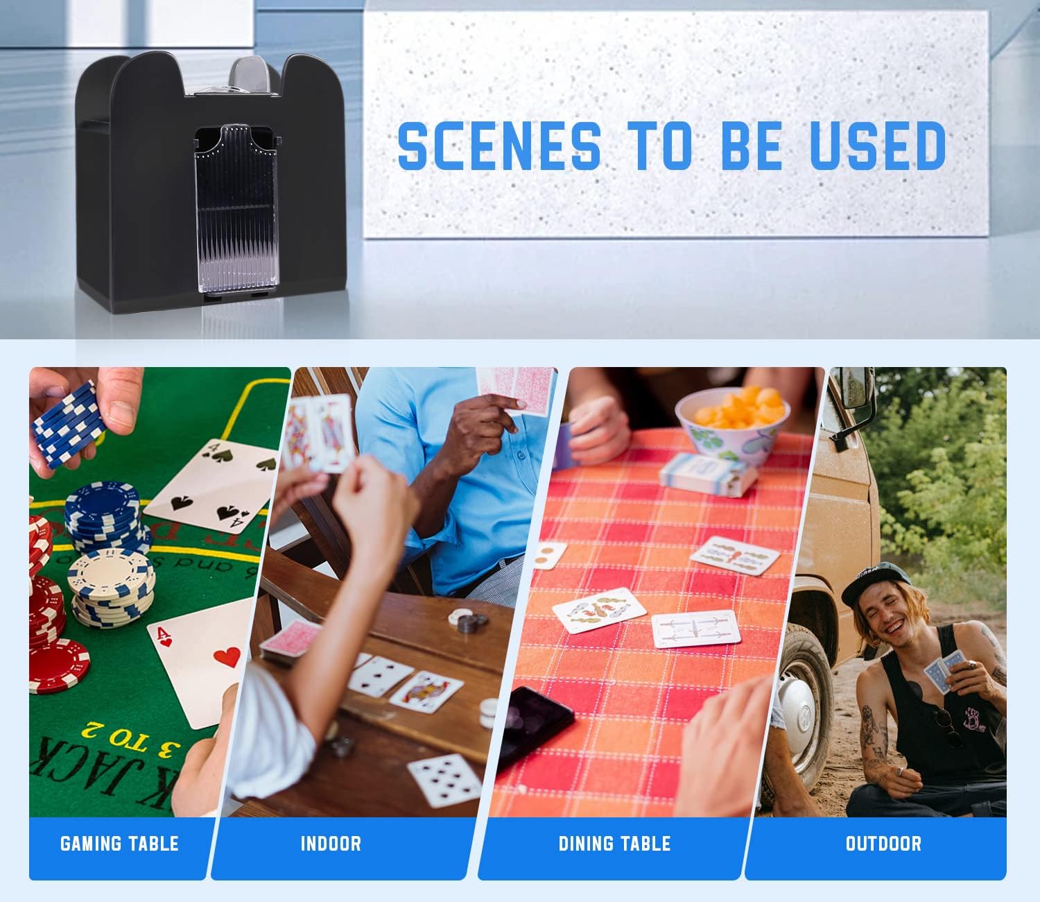 - Card Games: This pro automatic card shuffler works with most card games such as bridge, poker, Texas hold 'em, blackjack, casino poker games, UNO, Magic The Gathering, card games, etc