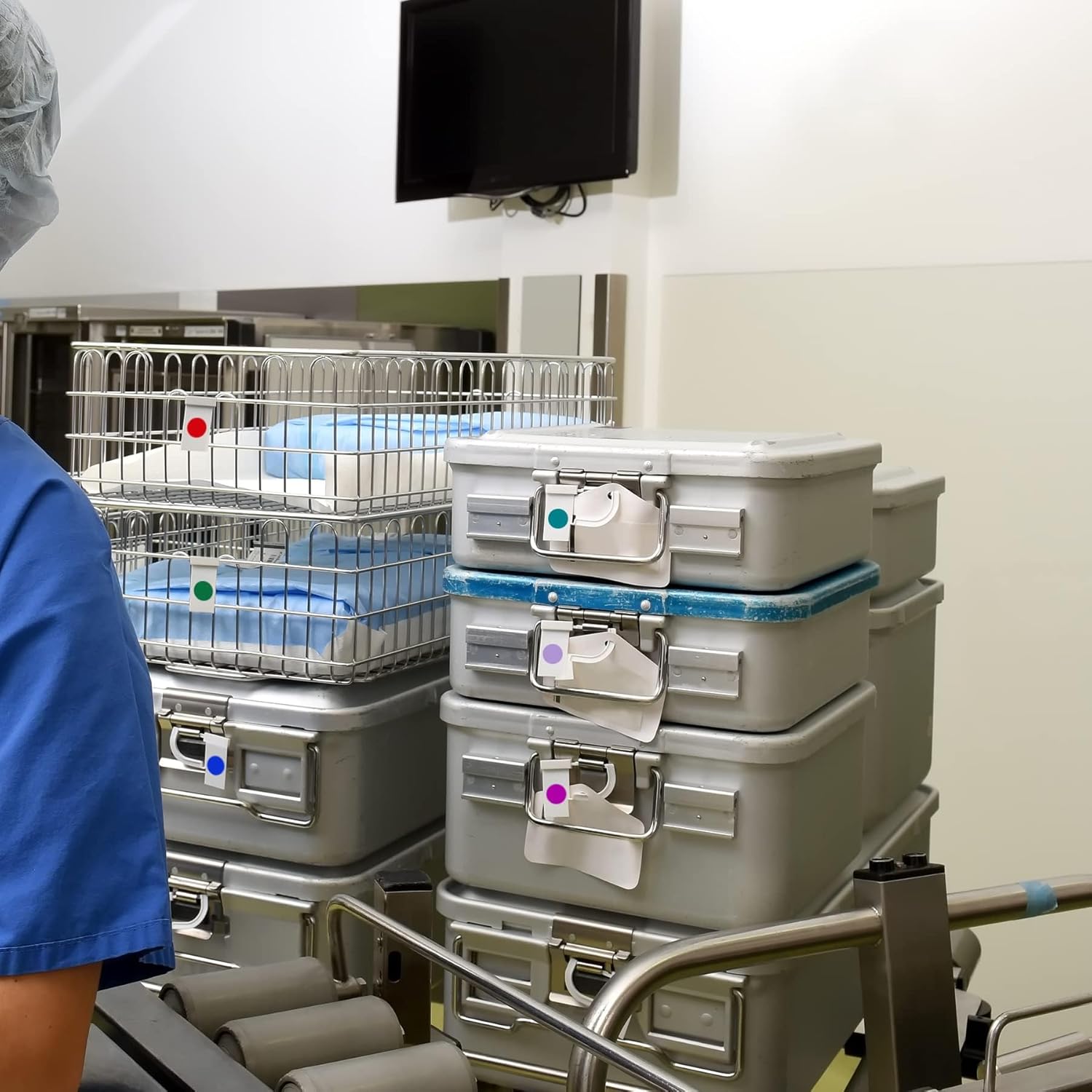 - 5,000 Total round labels -- 1,000 in each hangable box -- Dark Blue, Red, Orange, Yellow, Green