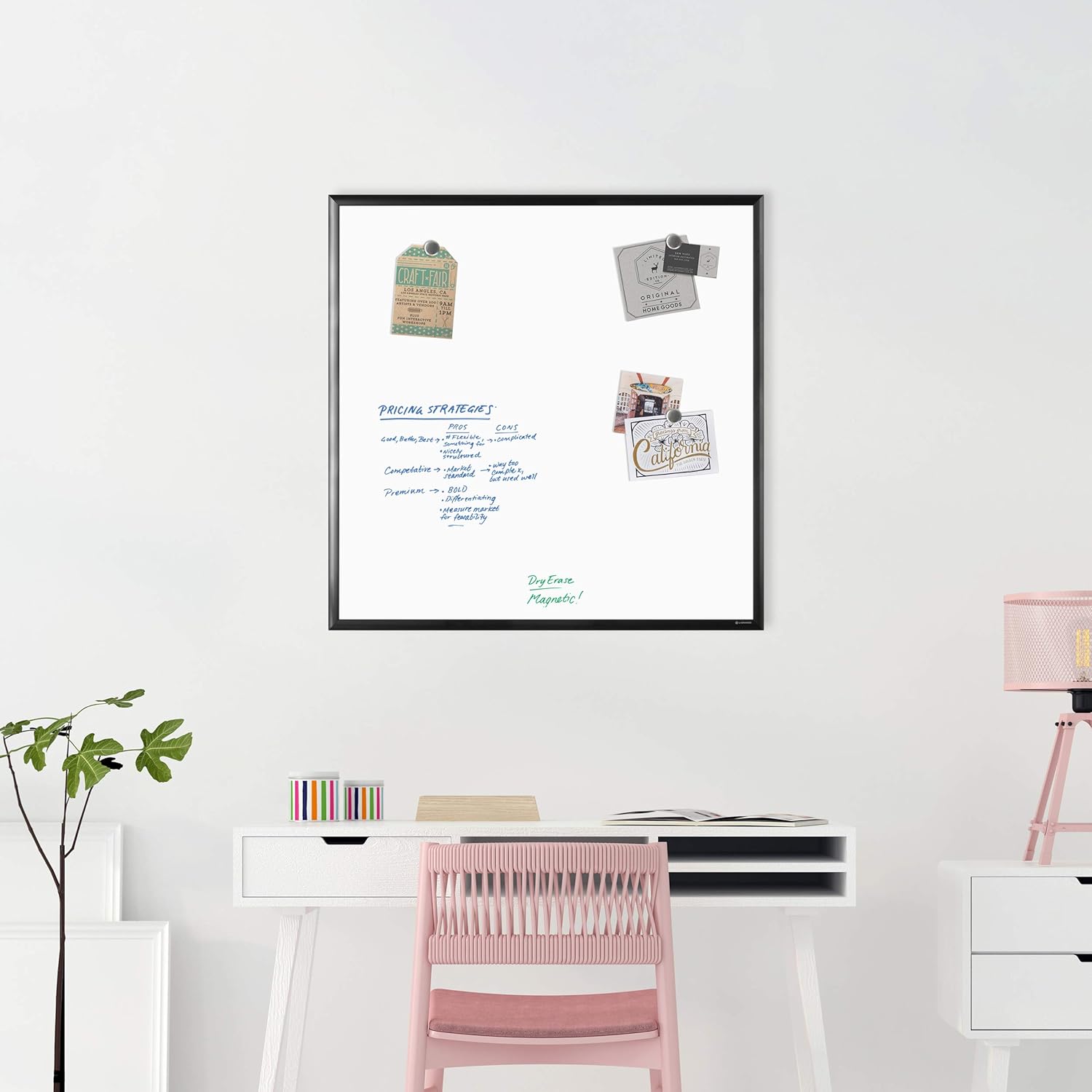 U Brands Magnetic Dry Erase Board White Board, 36" x 36" Inches, Black Wood Frame (2892U00-01)