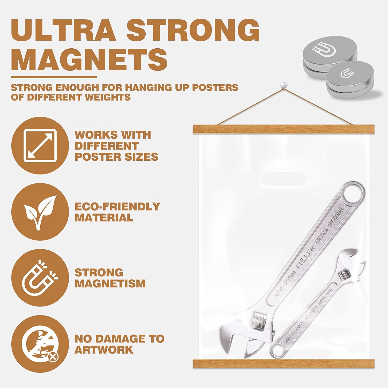 - Magnetic poster hangers with powerful magnets, strong enough to hang any kingds of prints, maps, posters and even tapestry