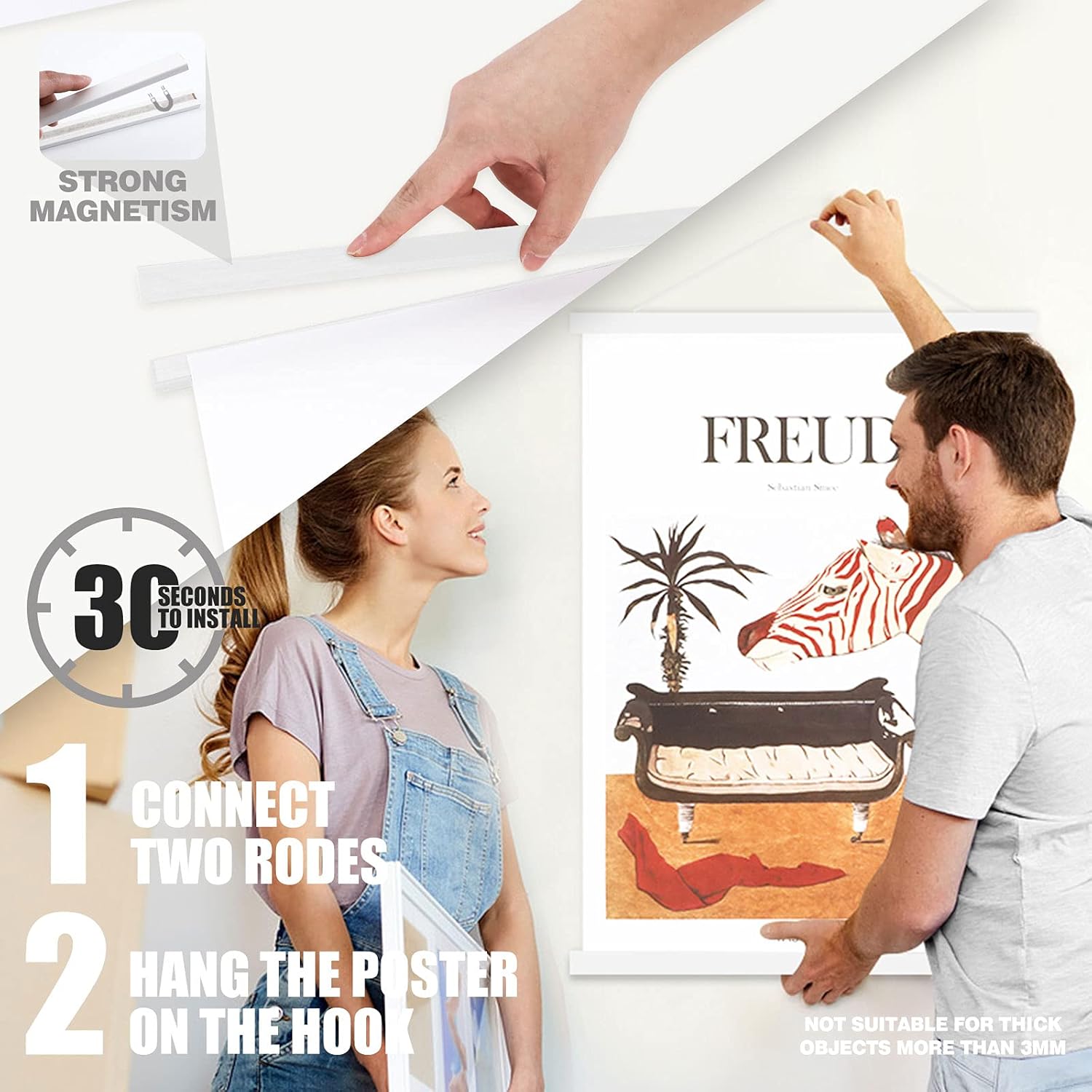 - Kindly Note: the magnetic poster hanger may not suitable for thick items