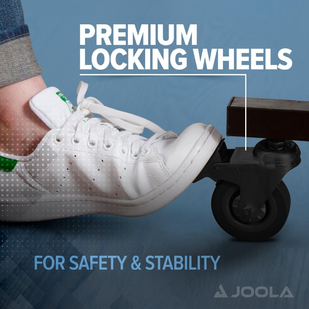 - SAFE, MOBILE, COMPACT STORAGE: The 2 halves and 3" lockable wheels and casters makes this ping pong table easy to roll and move around when not in use. Can be used as an outdoor ping pong table on a clear, sunny day. Does not include ping pong paddles