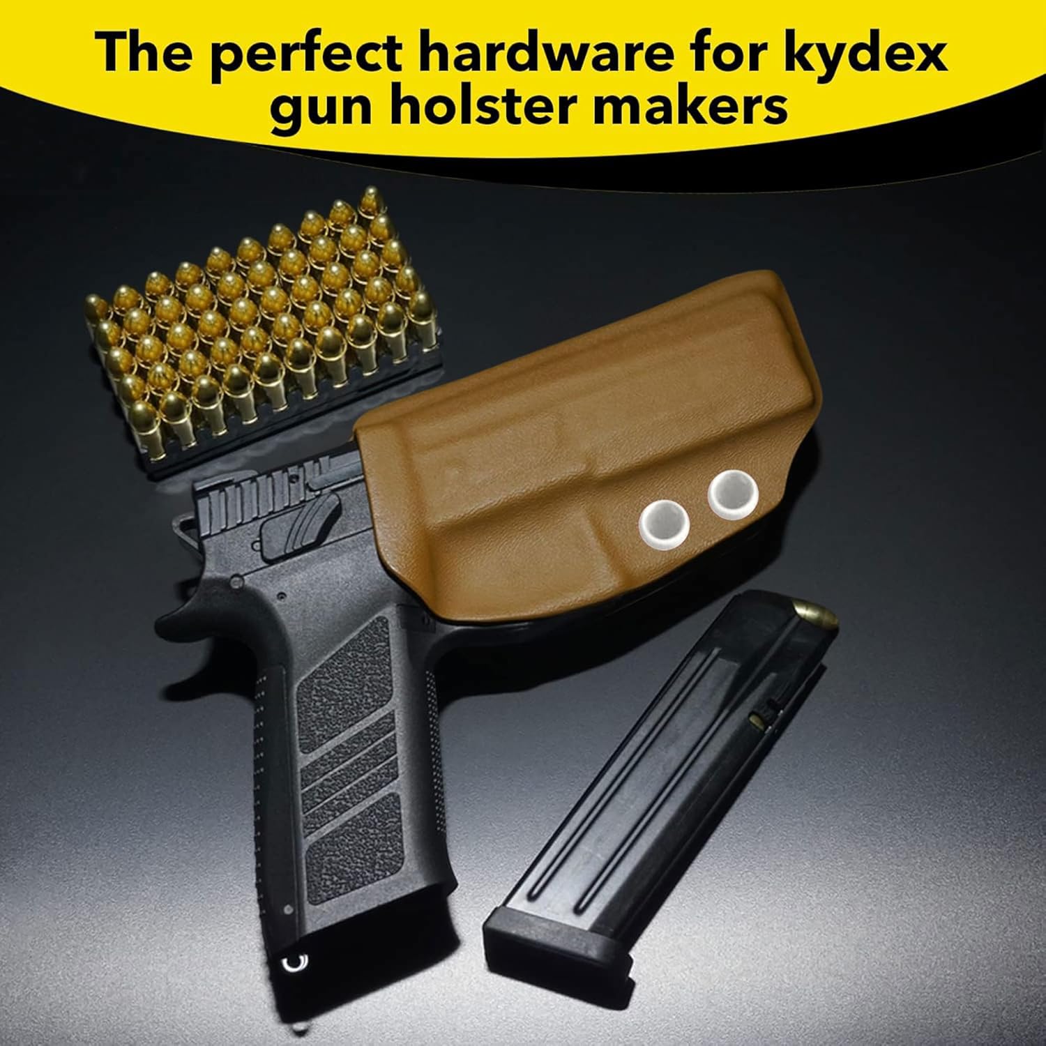 - Kydex Rivets for Secure Attachment: These Kydex rivets are made to be tough and long-lasting, providing a secure way to attach your Kydex holsters, knife sheaths, and other DIY tactical projects. Perfect for making outdoor gear and custom Kydex accessories, they are designed for strong, durable use.