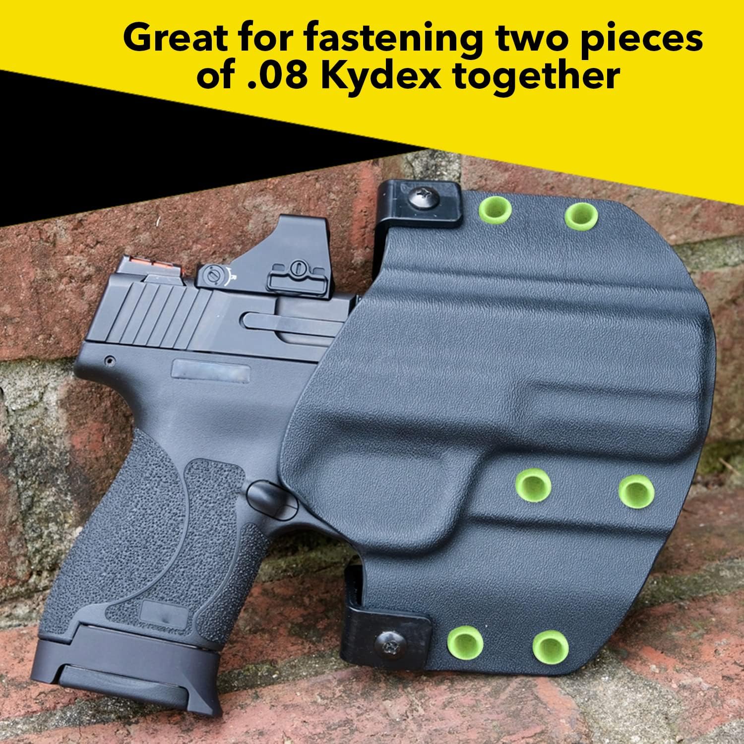 - Ideal for Holster and Sheath Making: These 8-8 1/4" rivets are the perfect size for Kydex, leather, and other materials. They are great for creating concealed carry holsters, knife sheaths, and custom tactical gear. These rivets help give your projects a clean, professional look.