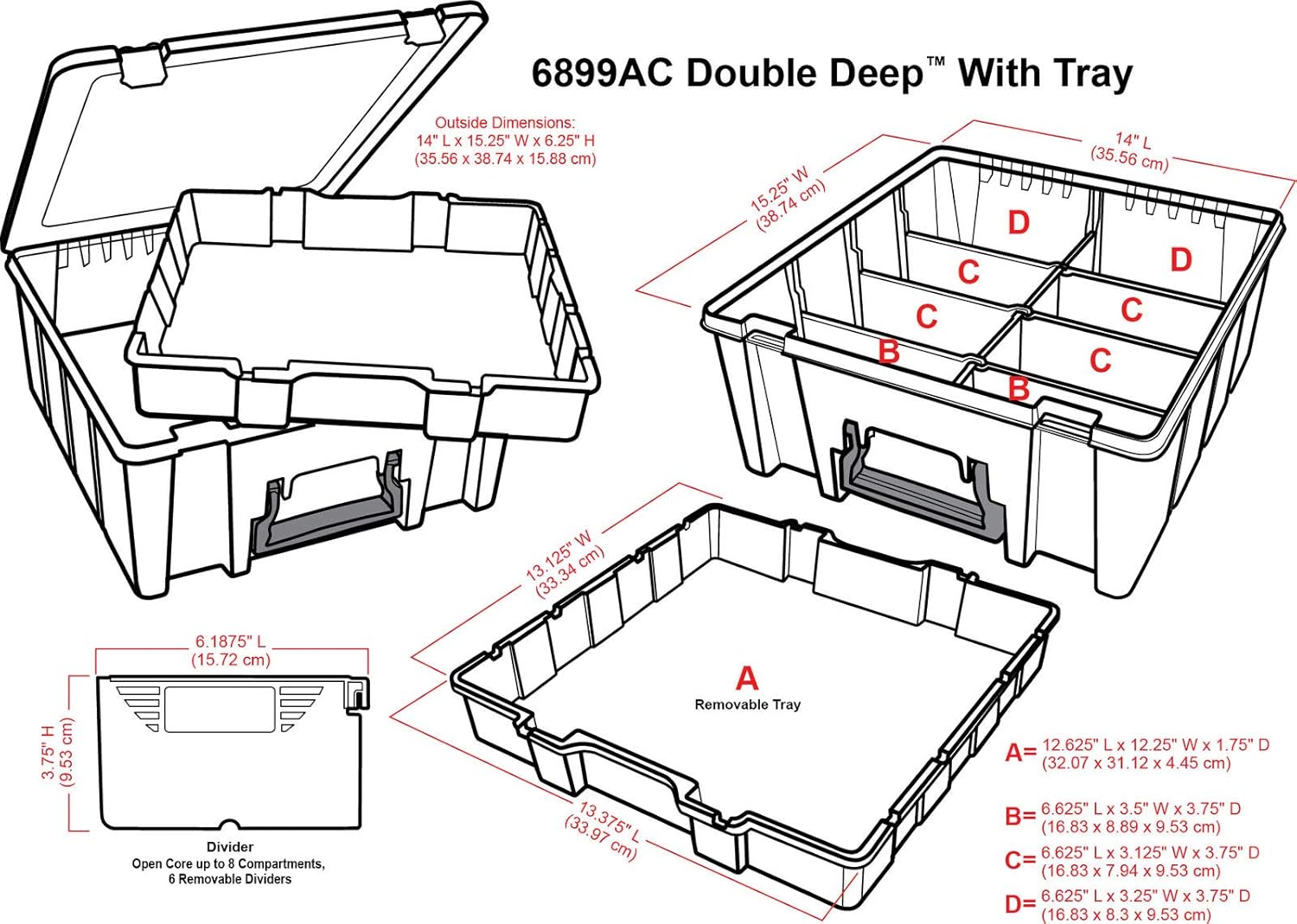 - Material: The Double Deep with Tray is made from polypropylene durable enough to resist wear & tear. The lift out tray and dividers offer maximum room to customize the space, making the storage more versatile.