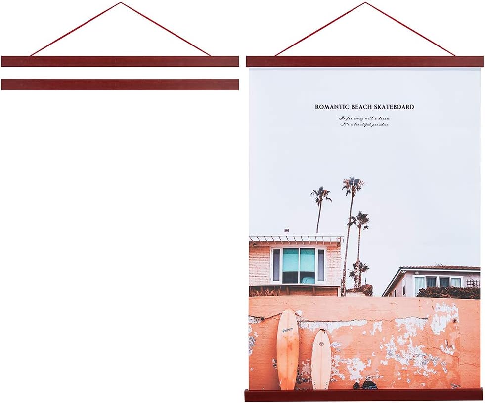 Artmag Magnetic Poster Hanger Frame, 33x24 33x23 33x47 Light Wood Wooden Magnet Canvas Artwork Print Poster Hangers Frames Hanging Kit (Mahogany, 33")