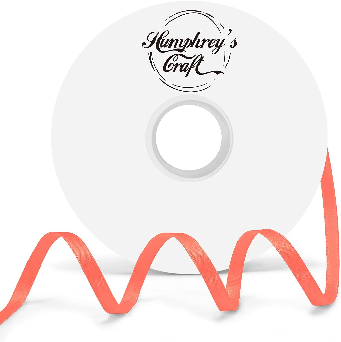 Humphrey's Craft 1/4 Inch Neon Orange Double Faced Satin Ribbon - 50 Yards Variety of Color for Crafts Gift Wrapping DIY Bows Bouquet Decoration Sewing Christmas Tree Wedding and Invitation Card.