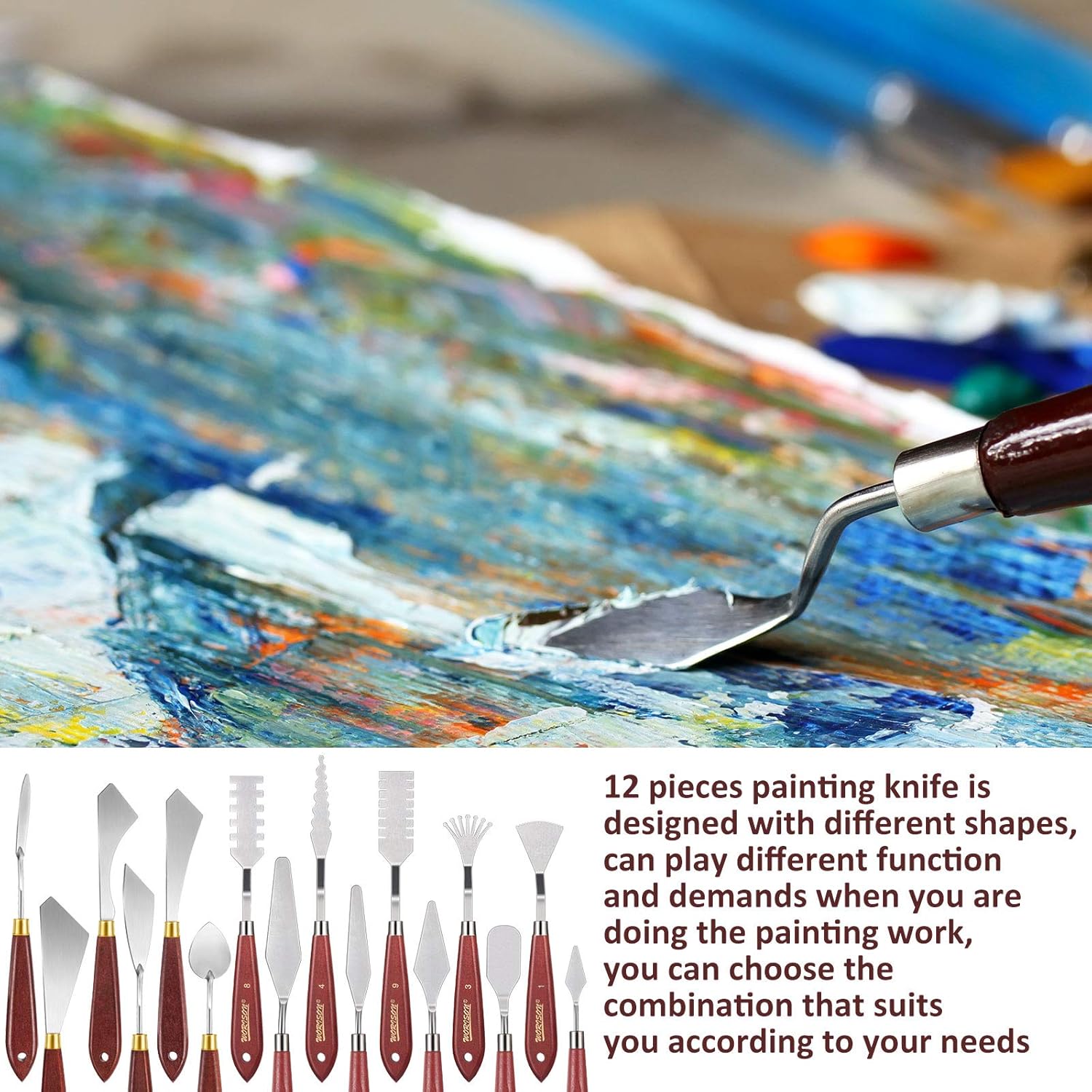 - Abundant painting tools: package comes with 16 pieces painting knife tools in different shapes, for meeting your varied needs in painting process, enough quantity also supports your daily use and sharing requirement, and you can choose or change them that suit your painting preference