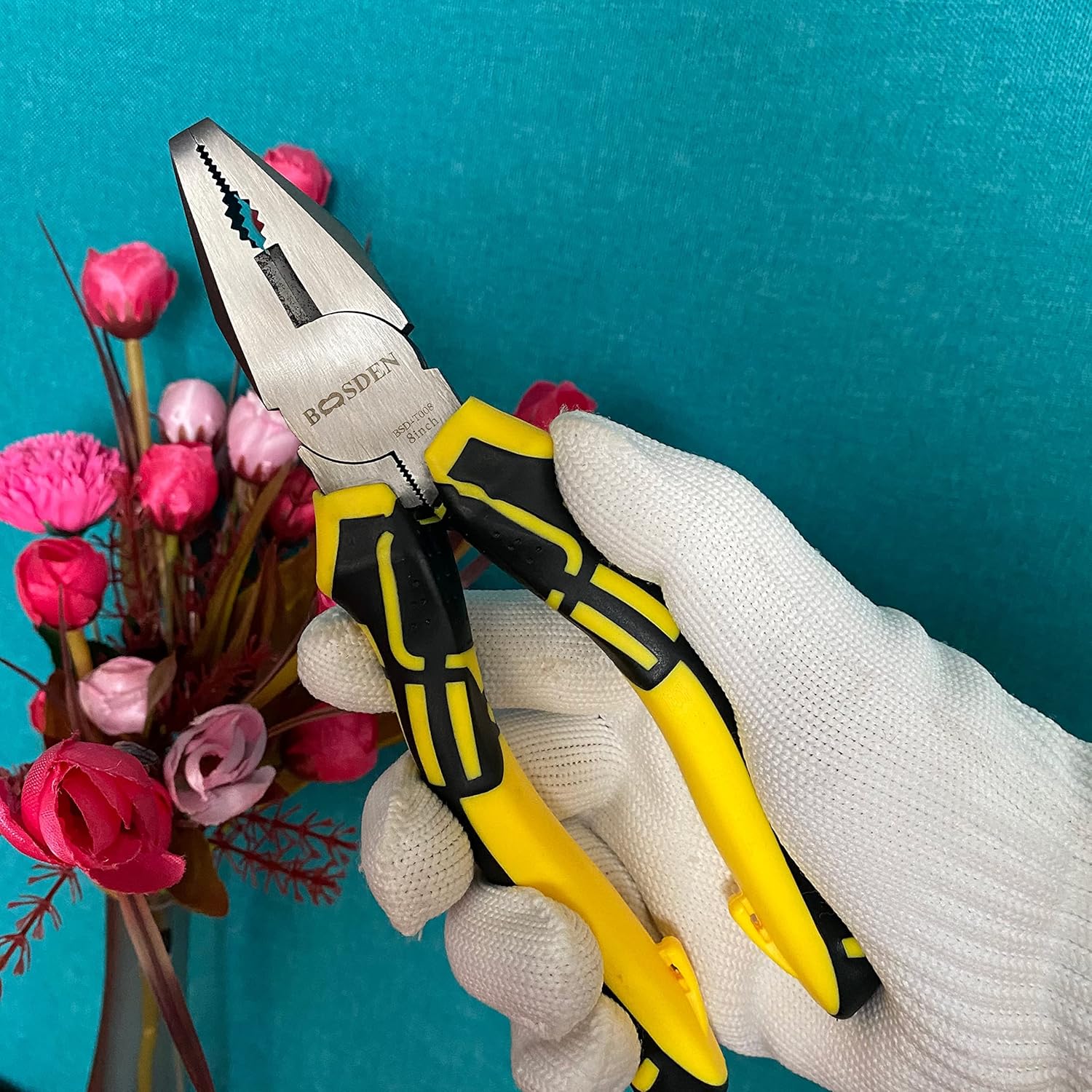 BOOSDEN 8 inch Lineman's Pliers - Side Cutters Combination Pliers with High Leverage and Wire Cutter Function