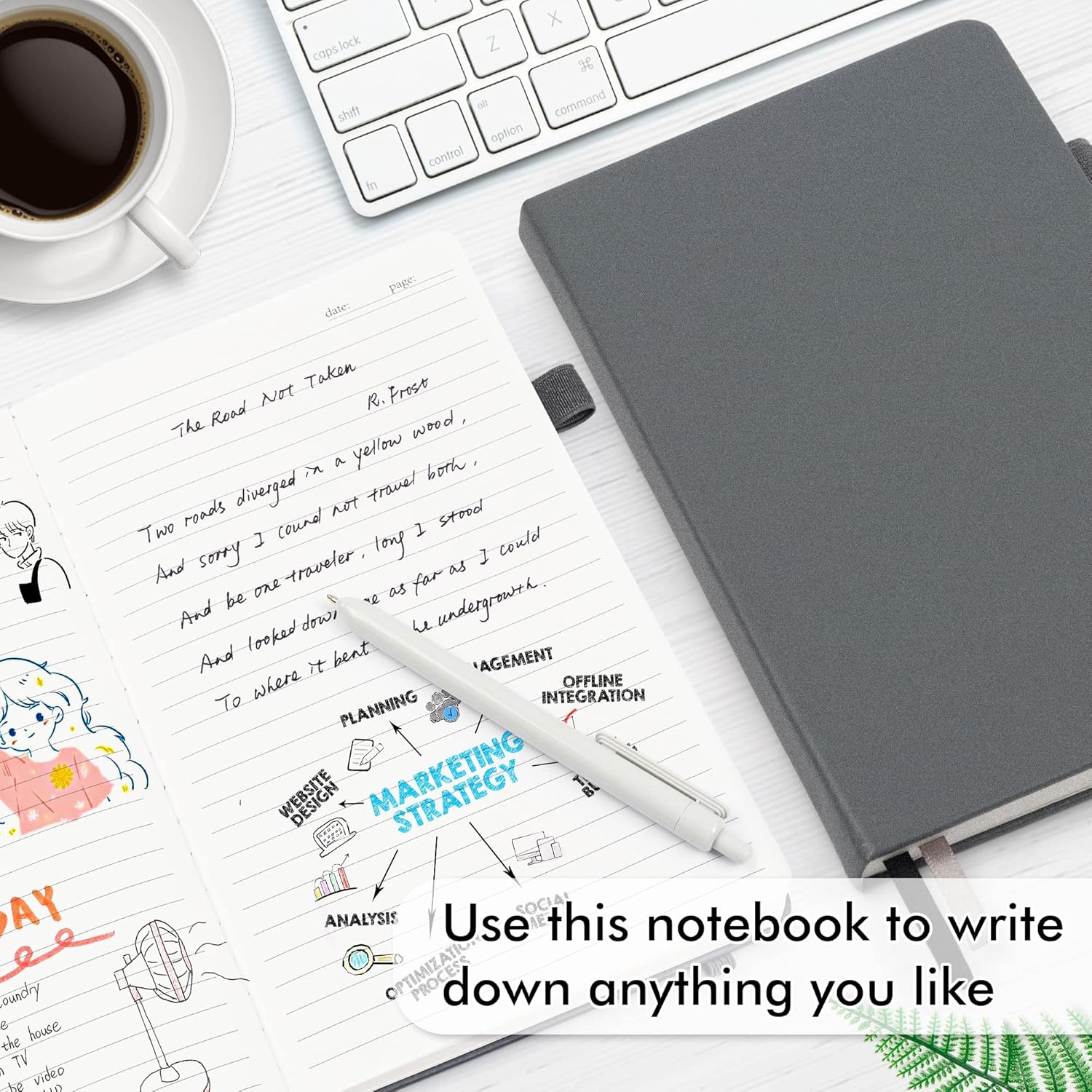 - Feela 24 Pack Classic Ruled Notebooks contains 24 classic gray ruled sturdy cover notebooks and 24 Black Retractable Pens. Each of the notebooks measures 8.3” x 5.1”, which is perfect to carry and easily held by young girls and boys. These black cute pens are customized to be placed in the pen holder, which is pretty convenient.