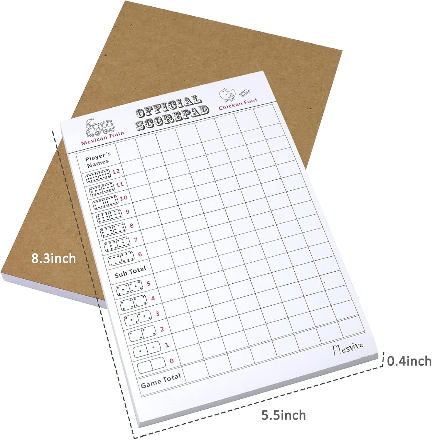 - [70-Sheet Mexican Train Score Pads]: There are 70 sheets in the score sheets with cardboard support at the bottom, which is used for a quick and easy record during your Mexican Train Dominoes time, saving you time in making such a form. It measures 8.3 x 5.5 x 0.4 inches which is great for recording and calculating the dots.
