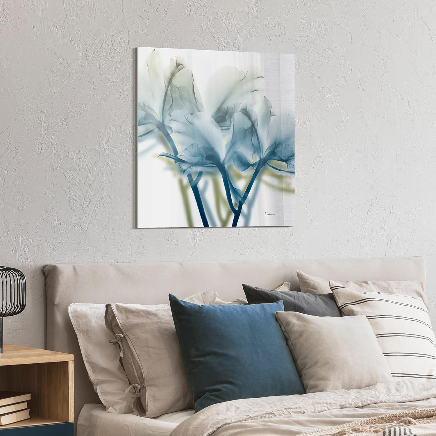 - FLOWER, ORCHIDS FRAMELESS TEMPERED GLASS WALL ART - In collaboration with Albert Koetsier, this beautiful piece displays an X-Ray image of blue flowers. Digital super high resolution printing artwork on ultra white tempered glass.