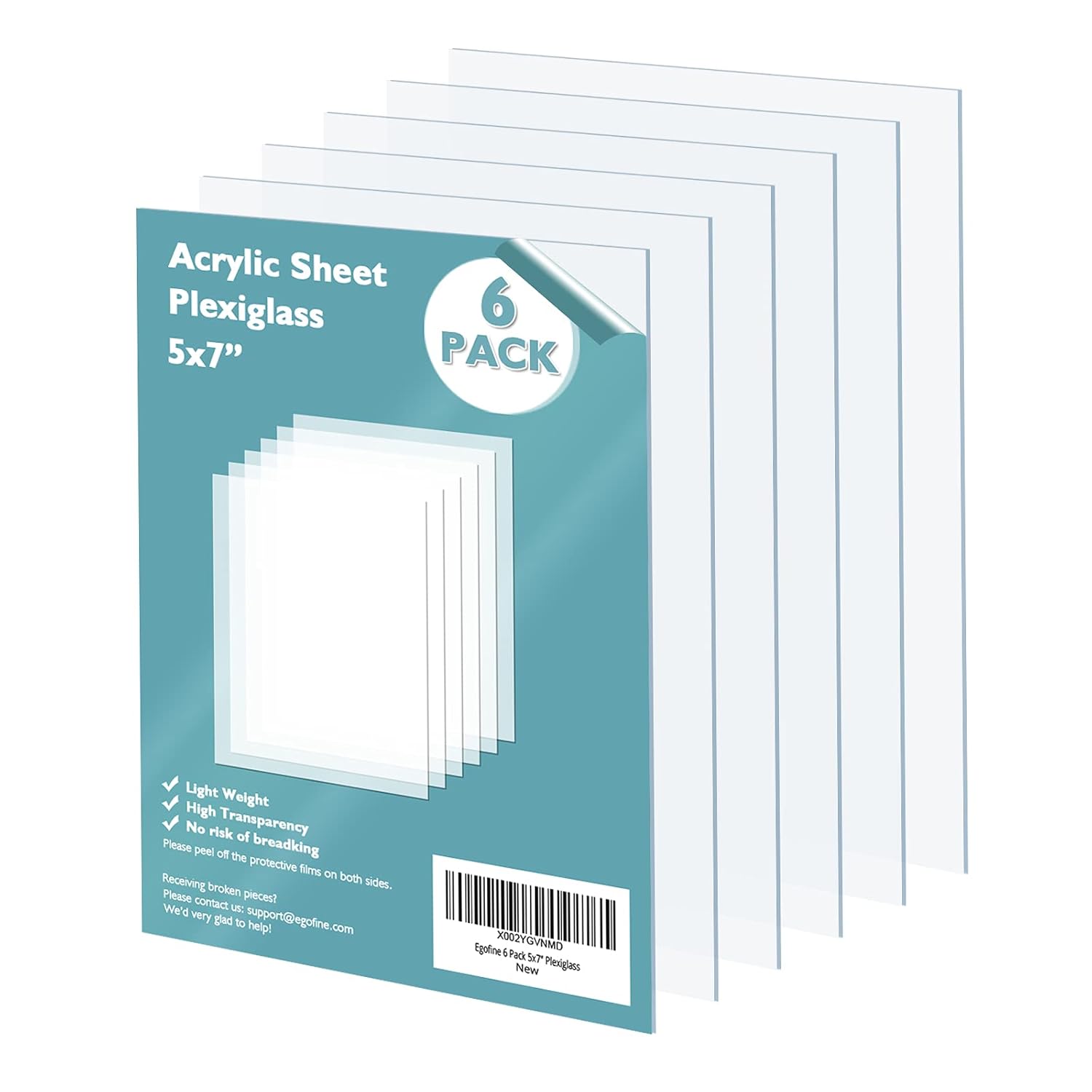 Egofine Plexiglass Sheets Acrylic Sheets 6 Pack of 5x7’’ 0.04 Thick Clear Plastic Cast Transparent Plexi Glass for Crafting Projects, Replacement Picture Frame Glass, DIY Display, Easy to Cut