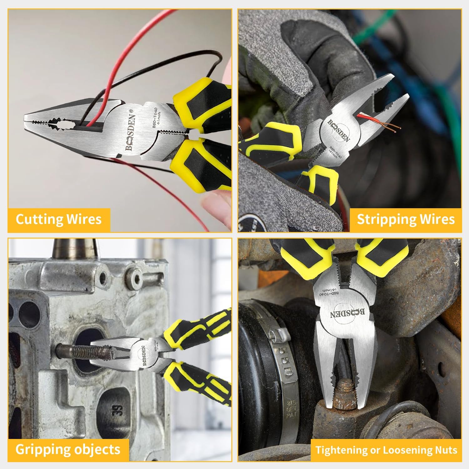 BOOSDEN Linesman Pliers, 6 Inch High Leverage Lineman's Plier, Combination Plieres, Electrical Pliers,Side Cutter Linemans Plier