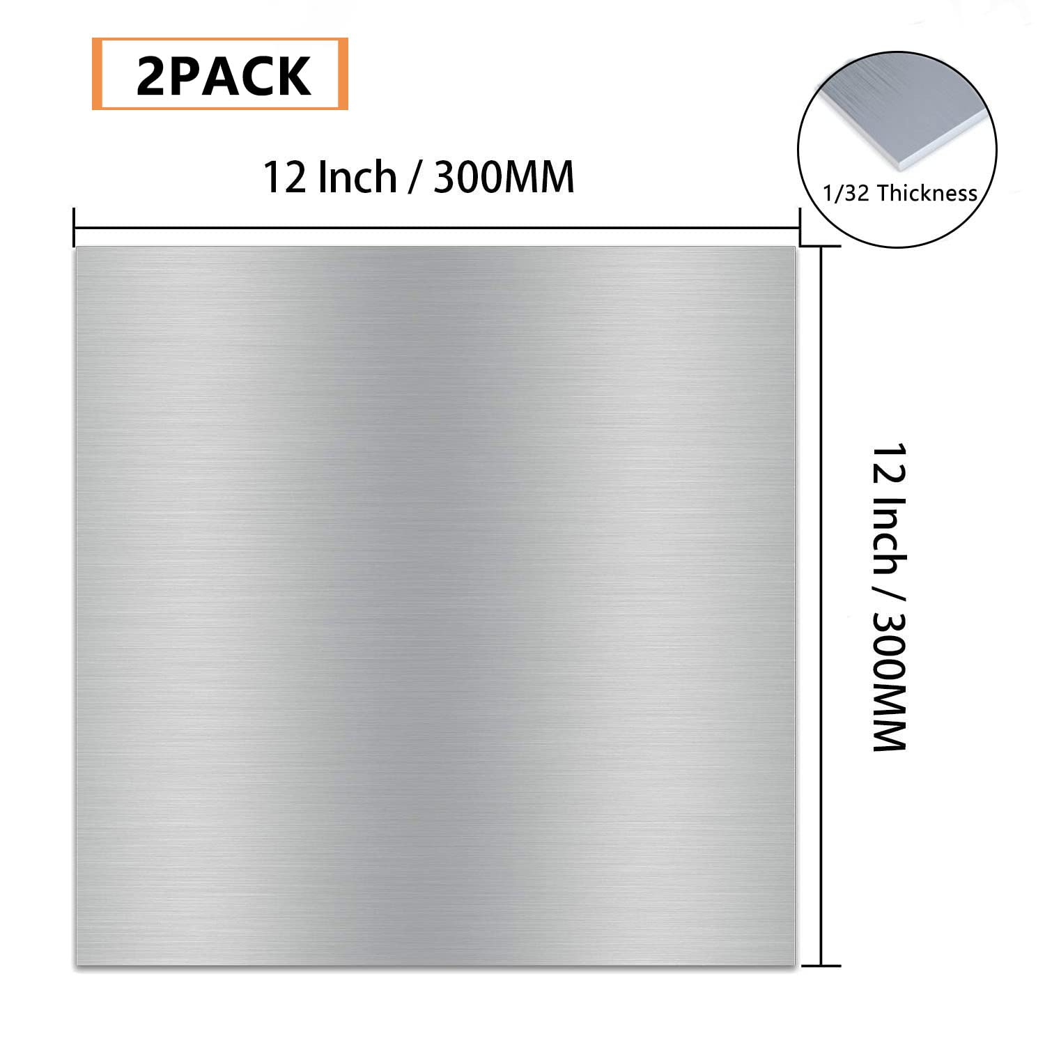 - 【6061-T651 Aluminum Sheet Size】2 Pcs 12”(L)x12”(W)x 1/32” (0.8mm)(thick).