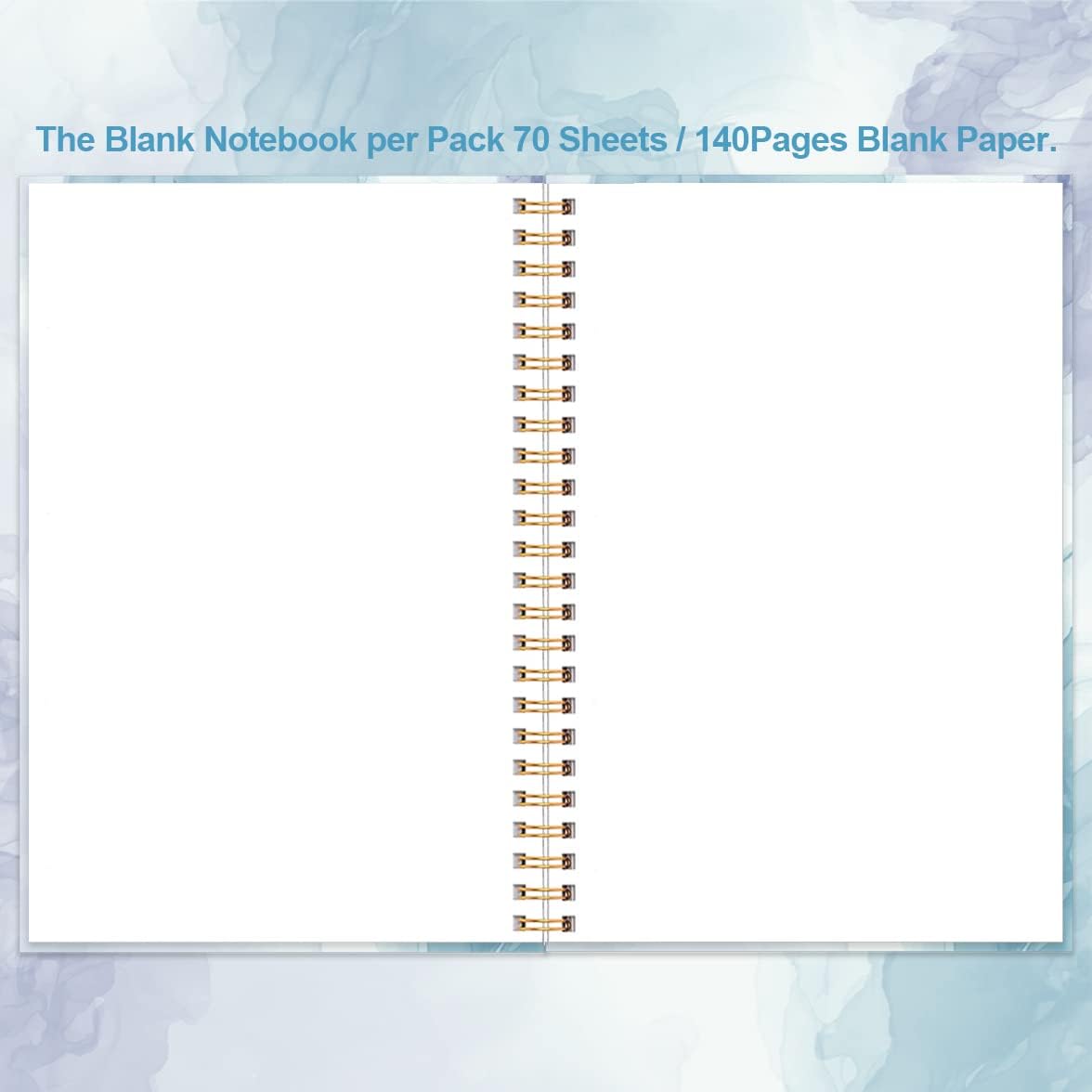 A5 Blank Notebook - 70 Sheets/140 Pages Blank Paper Notebook, 100 GSM Thick White Paper, 5.8" x 8.3" Spiral Blank Journal, Blue Watercolor