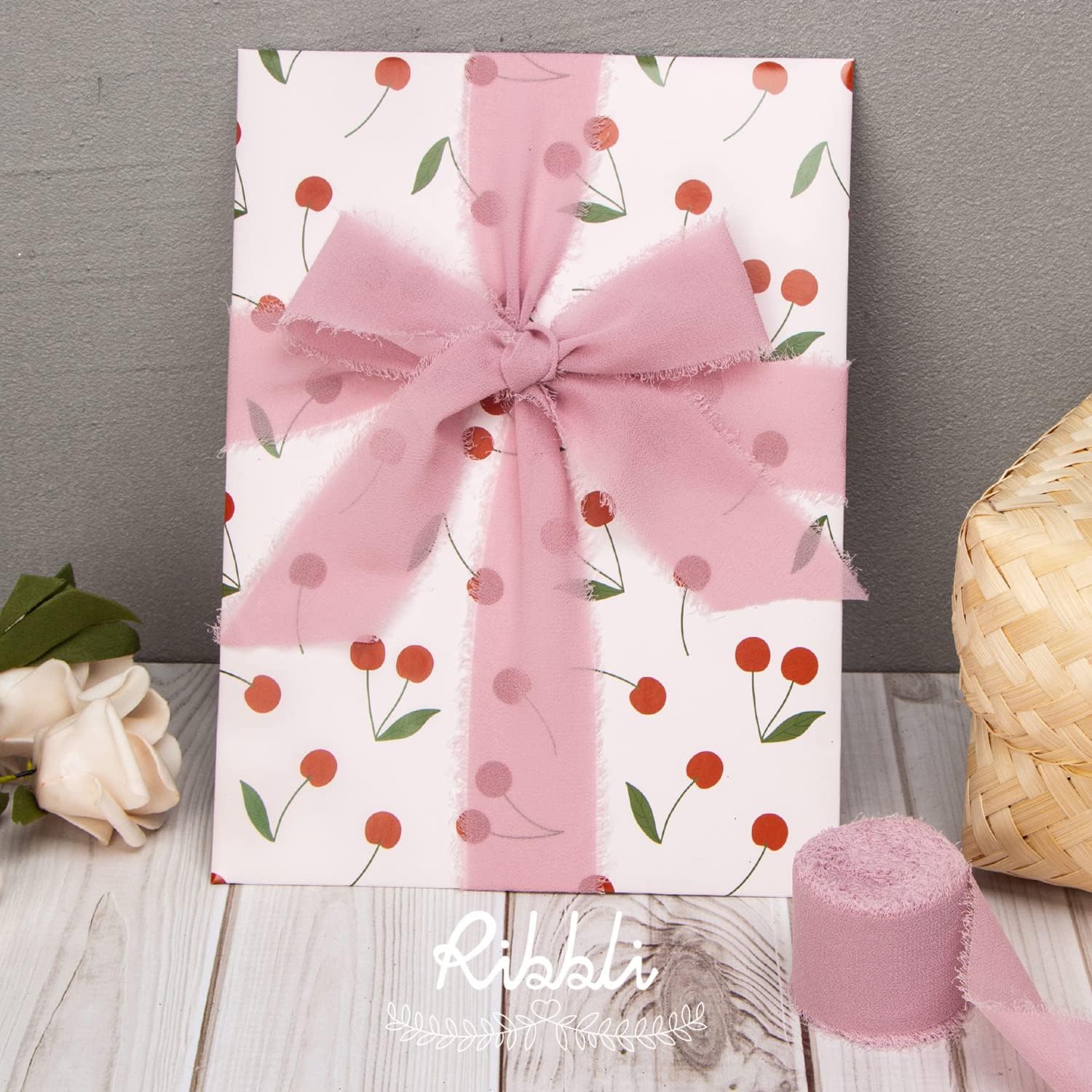 Ribbli Dusty Rose Chiffon Ribbon 1-1/2 inch x 20 Yard Handmade Fringe Chiffon Silk Ribbon,Mauve Ribbon for Wedding Invitations, Bridal Bouquets Wrapping, Flower Arrangement Decoration