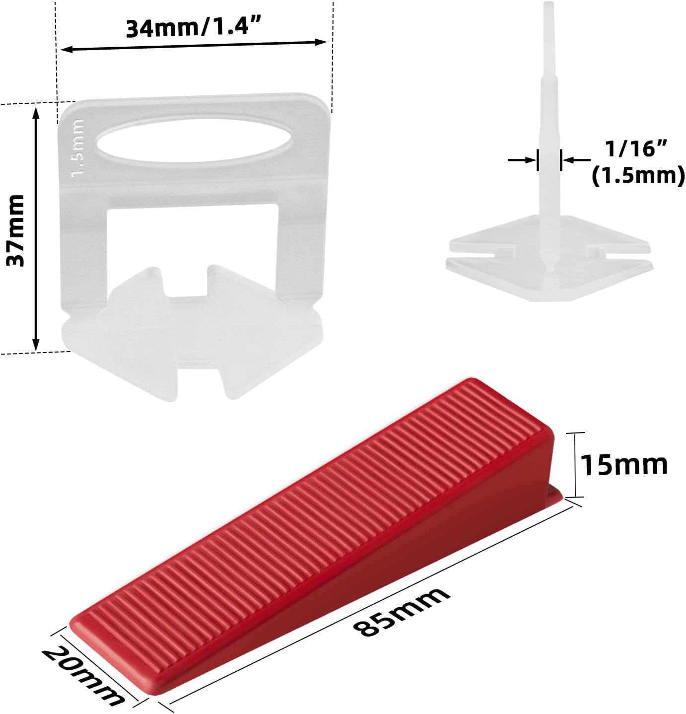 - 【Disposable Tile Clips】: 1000 PCS tile leveler spacers clips included. Suitable for 1/8" (3mm) to 1/2"(12mm) thickness of the tile, allows for a 1/16"(1.5mm) minimum grout joint.