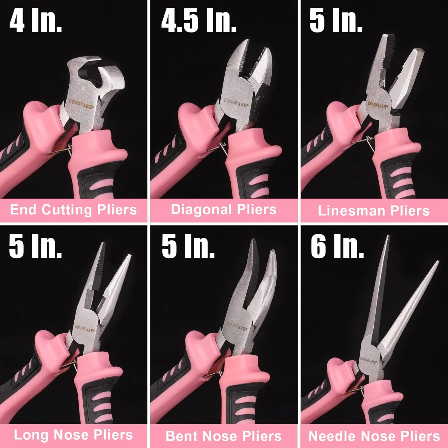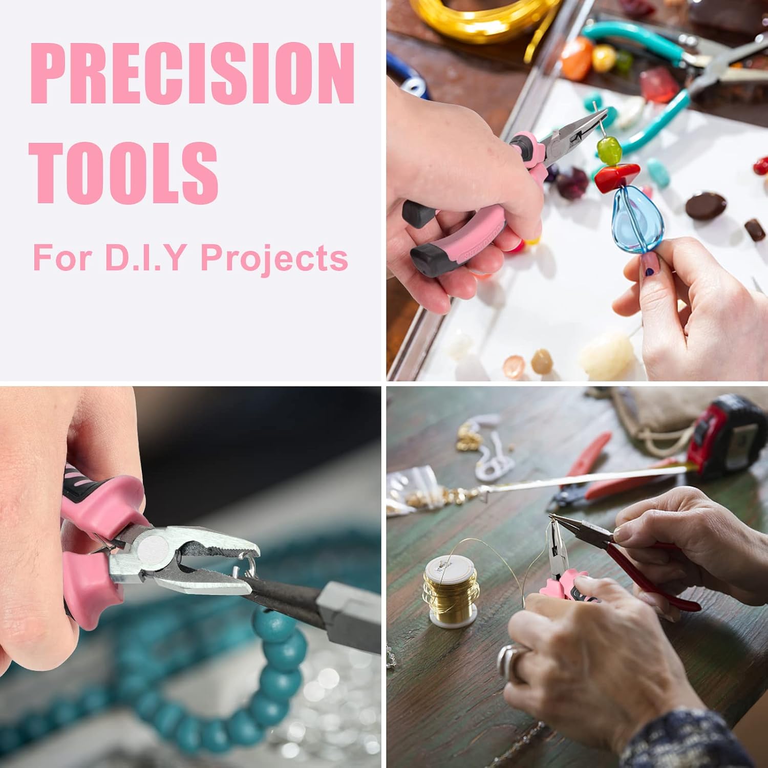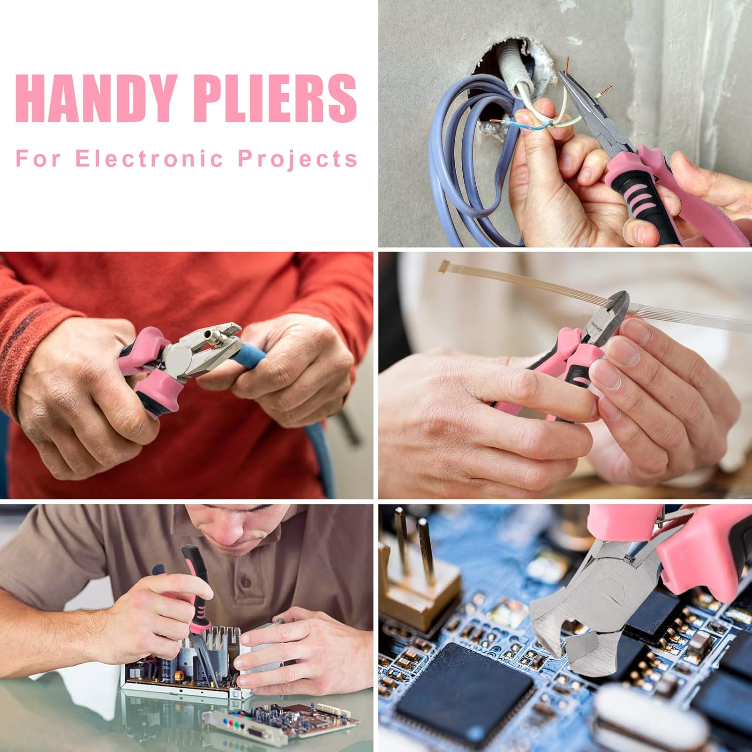 - 【MULTIPLE PLIERS】 This mini pliers set includes 6-inch needle nose pliers, 5-inch linesman pliers, 5-inch mini long nose pliers, 5-inch mini bent nose pliers, 4.5-inch diagonal pliers and 4-inch end cutting pliers. The 6 piece pliers tool set helps to fix electronic tools and is suitable for crafts and jewelry making.