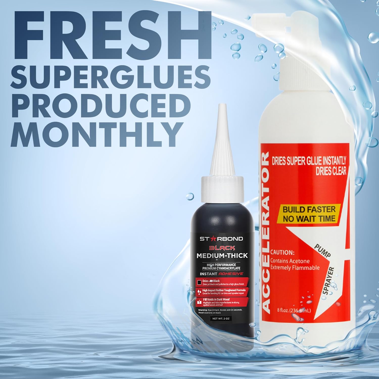 - ✅ PREMIUM CYANOACRYLATE SUPER GLUE - LAB TESTED FOR OPTIMAL PERFORMANCE: High performance industrial grade adhesive. Starbond Black Medium Thick CA and Accelerator is a reliable time efficient system used to fill small wood knots, cracks, voids, and bug holes. Applying the glue in thinner layers around is recommended for larger and deeper voids.