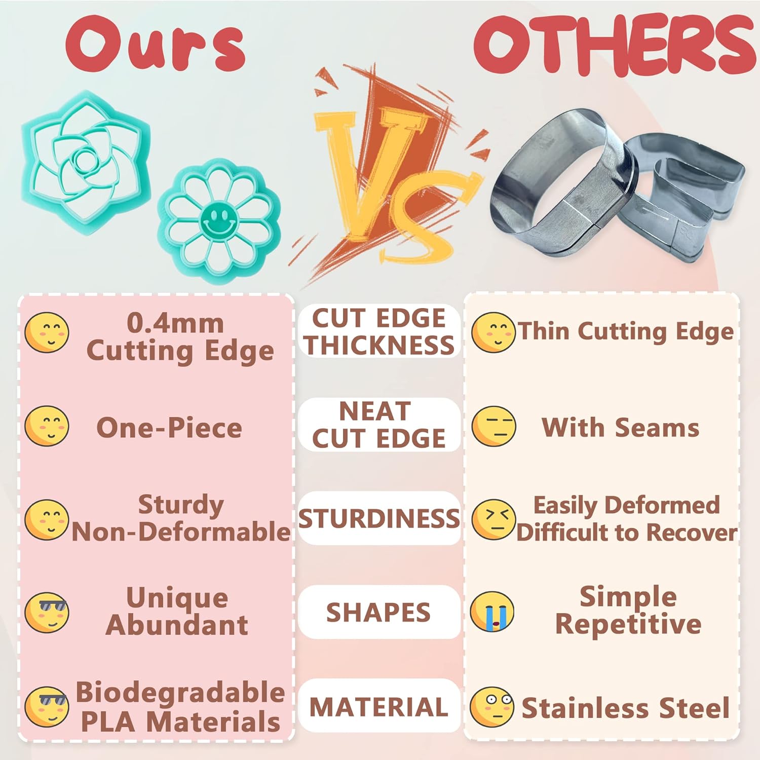 - 【Clear Cutting Design】 Earring cutters for polymer clay are designed for clay earring making, with 0.4mm(±0.1mm) cutting edge, providing a smoother and more comfortable cutting experience. We added a hand-held section to the top of the clay cutters for polymer clay jewelry, and the thickened edge protects your hands better during use.