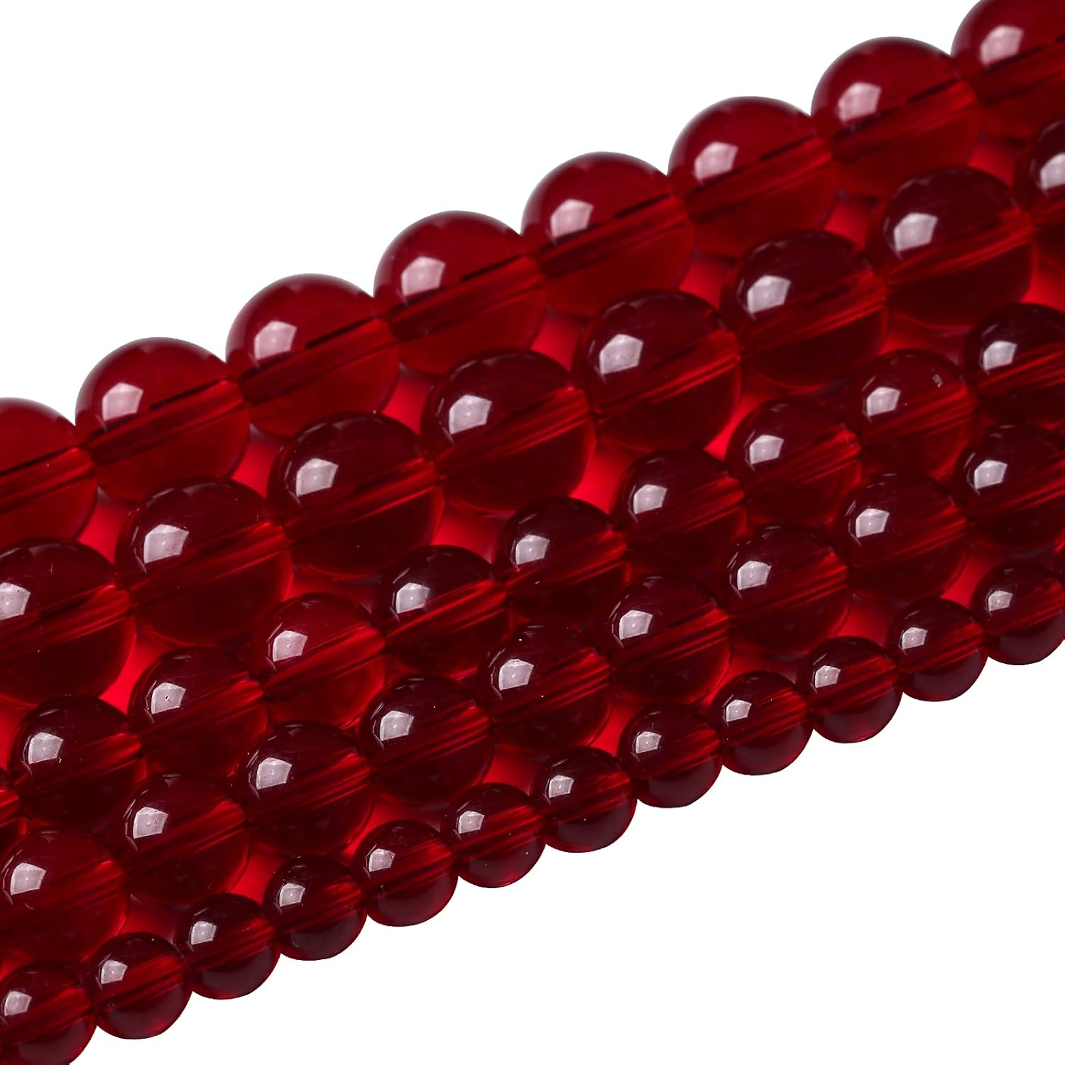 Smooth Garnet Red Glass Crystal Round Loose BeadsFor Jewelry Making DIY Bracelet Necklace Accessories 4mm 91pcs 15" Strand(Garnet Red Glass, 4mm)