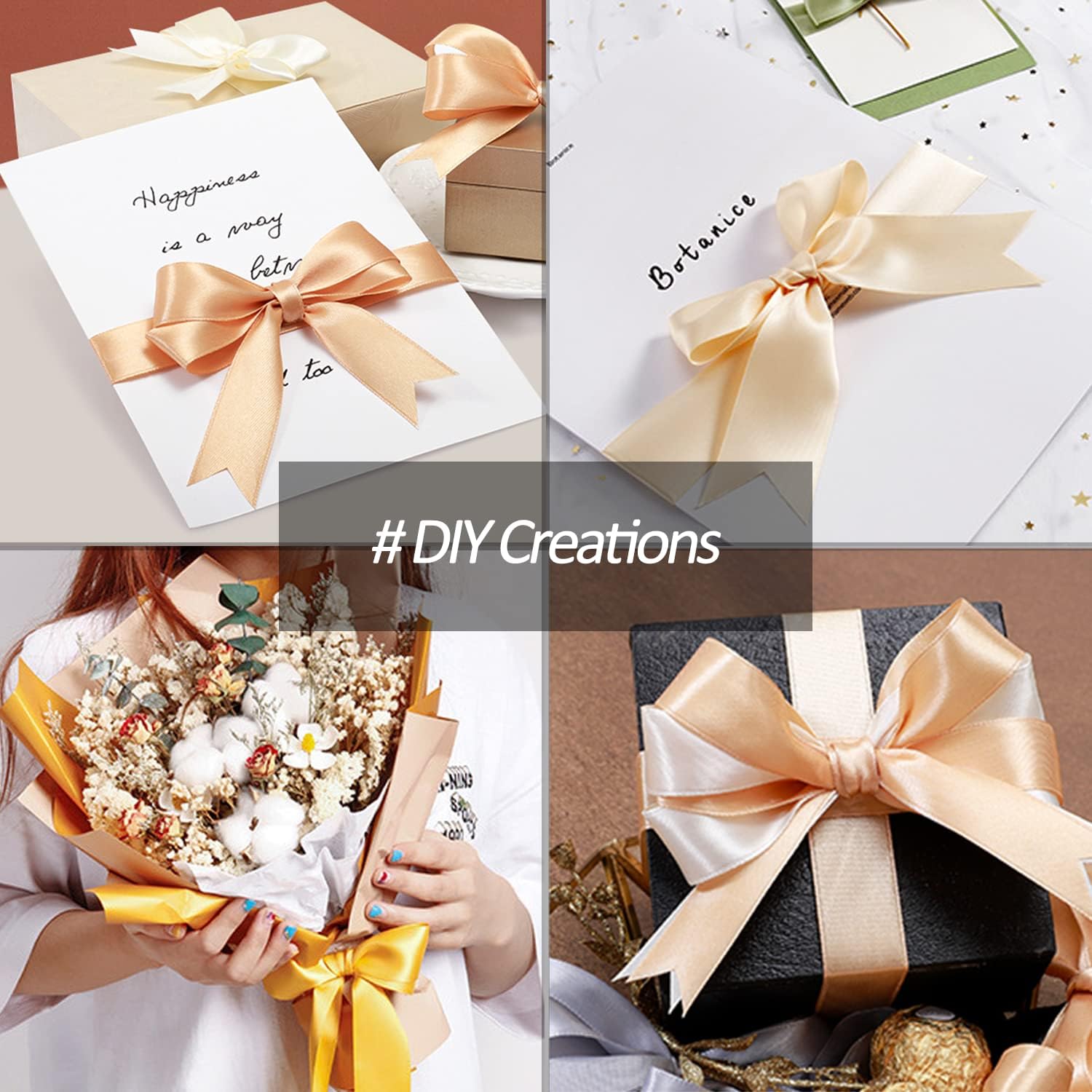 - 【PREMIUM RIBBONS】 Our fabric ribbons is made of high quality polyester. Feature on smooth, soft and silk surface without any wrinkles. The color of the ribbon is the same as that shown in the picture, and there is no color difference. It is the best ribbon to choice for gift wrapping and crafts.