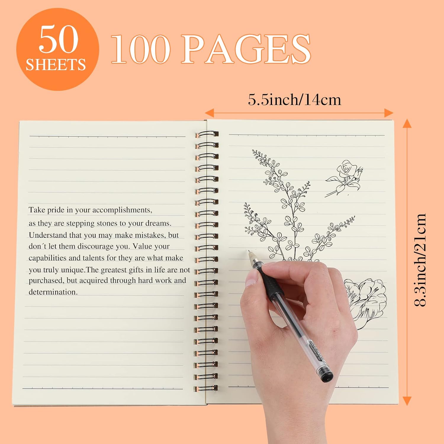 - Ideal A5 Size for Portability:measuring 5.5 x 8.3 inches (14 x 21 cm), each writing notebook has 100 lined pages. Lightweight and compact, ideal for carrying in backpacks or handbags for quick notes anywhere