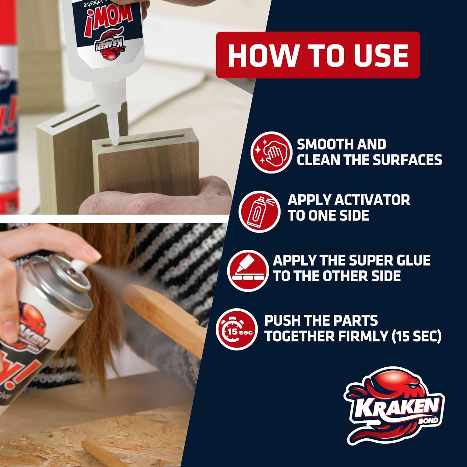 - FOR BEST ADHESIVE PERFORMANCE: Using different brands of CA glue and activator may result in varied chemical reactions due to differences in composition and viscosity. For optimal results, we recommend using this activator with Kraken Bond WOW Super Glue.