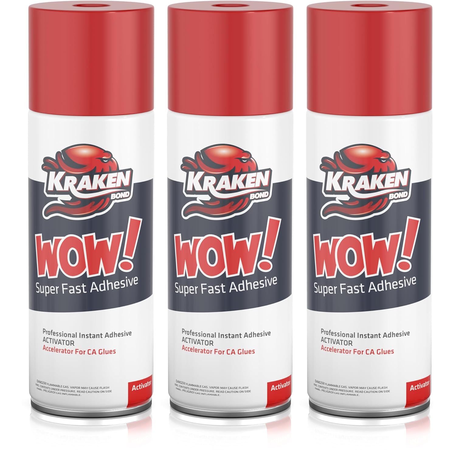 KRAKEN BOND Wow! Spray Adhesive Activator(3X6.76 Oz.) - Cyanoacrylate Super Glue Accelerator Spray for Plastic, Metal, Wood & PVC, CA Glue Activator | 3 Pack