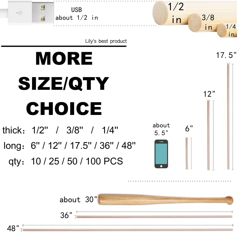HOPELF 100Pc Dowel Rods 1/4 x 17.5 Inch Bamboo Sticks - Assortment for Crafts, DIY Projects