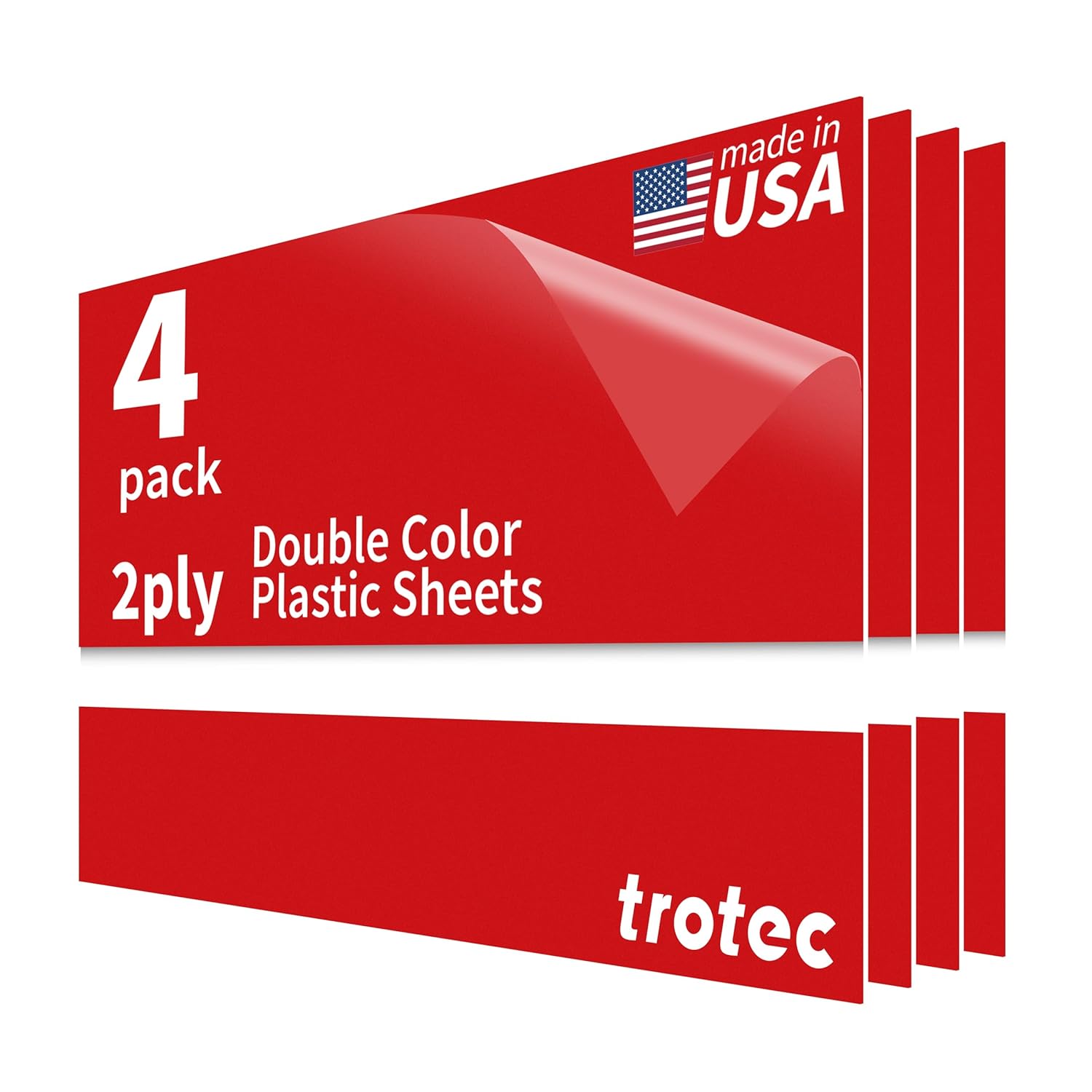 Trotec TroLase | 12"x20"x1/32", 4 Pcs | Red/White | 2 Ply | Modified Acrylic | Laser Engraving Double Color Plastic Sheet | Engraving Blanks for Laser, Saw, Guillotine | Made in USA