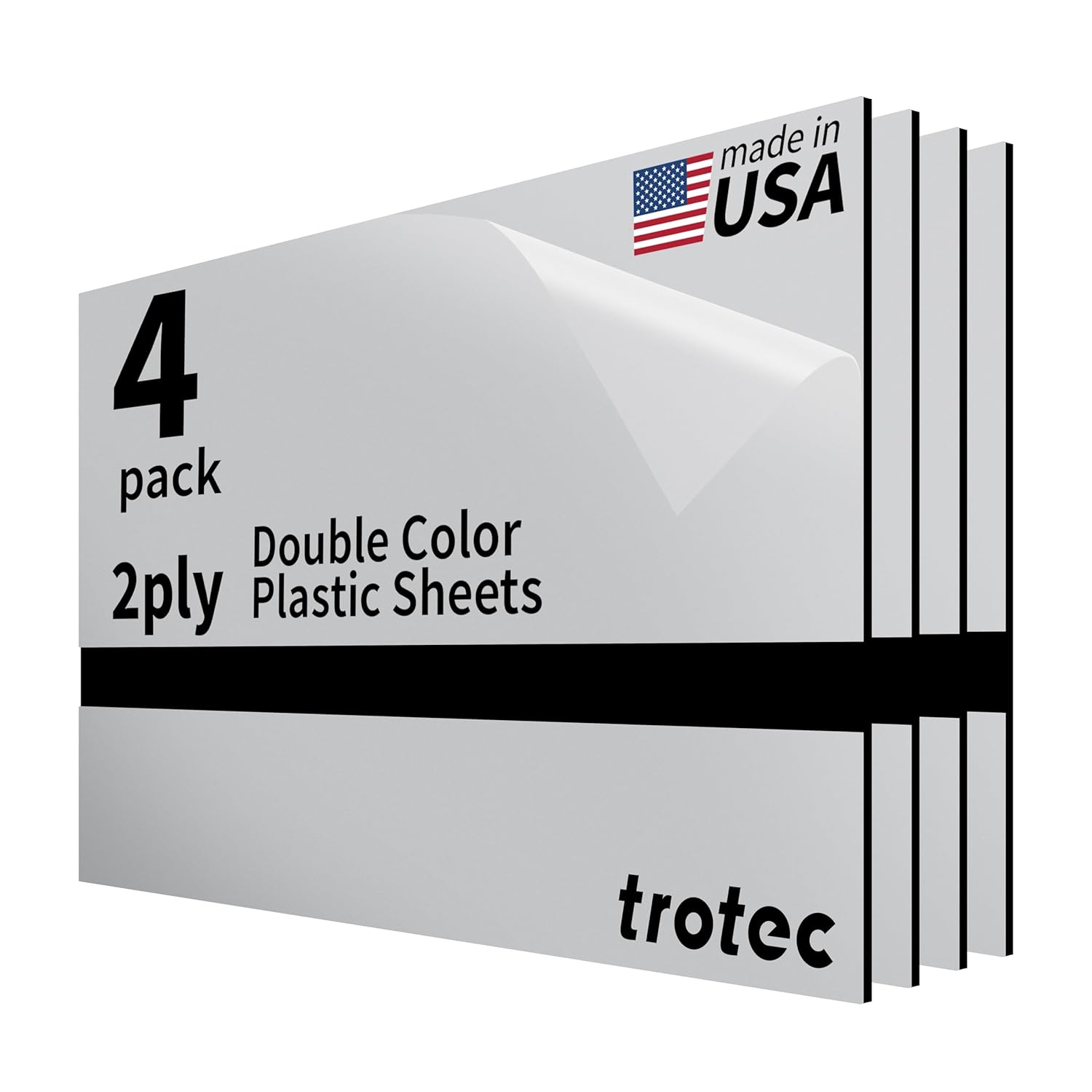 Trotec | Metallic Looking Acrylic Sheet | 12"x20"x1/16, 4 Pcs | Smooth Silver/Black | Metallic Finish - Scratch Resistant for Laser Engraving & Cutting,Printing,Glowforge,Name Plate | USA Made