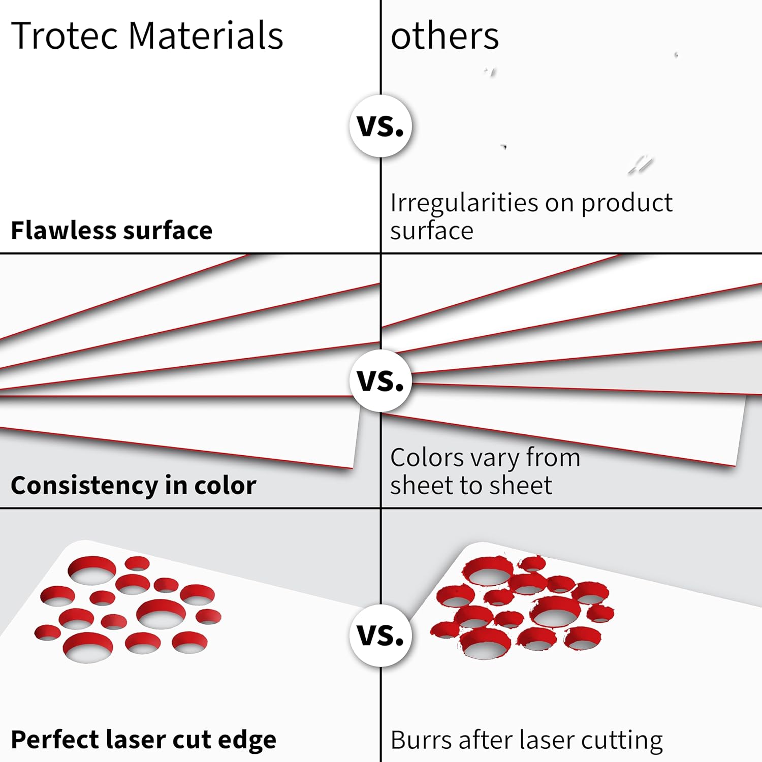 Trotec TroLase | 12"x24"x1/16", 4 Pcs | White/Red | 2 Ply | Modified Acrylic | Laser Engraving Double Color Plastic Sheet | Engraving Blanks for Laser, Saw, Guillotine | Made in USA