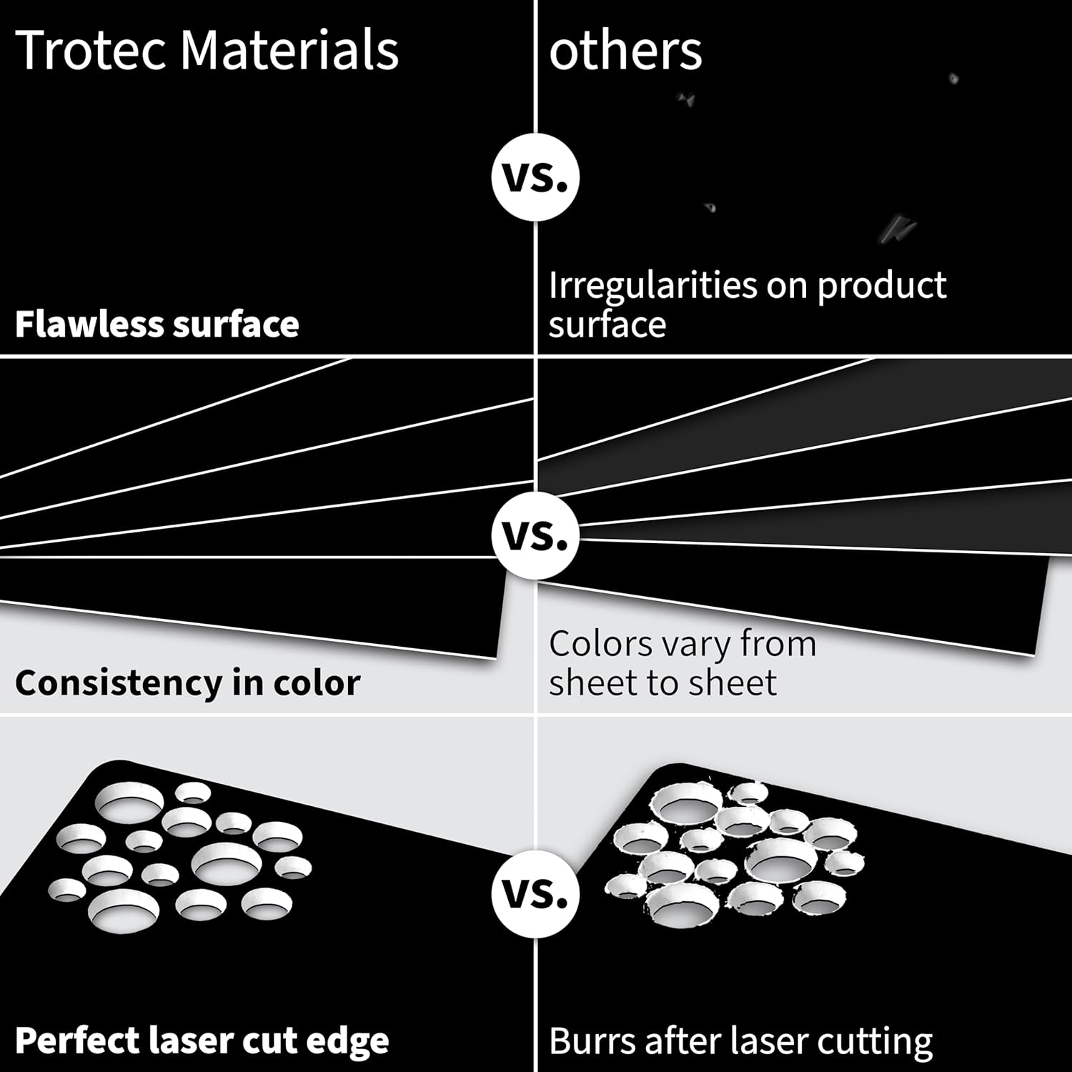 Trotec TroLase | 12"x24"x1/8", 4 Pcs | Black/White/Black | 3 Ply | Modified Acrylic | Laser Engraving Double Color Plastic Sheet | Engraving Blanks for Laser, Saw, Guillotine | Made in USA