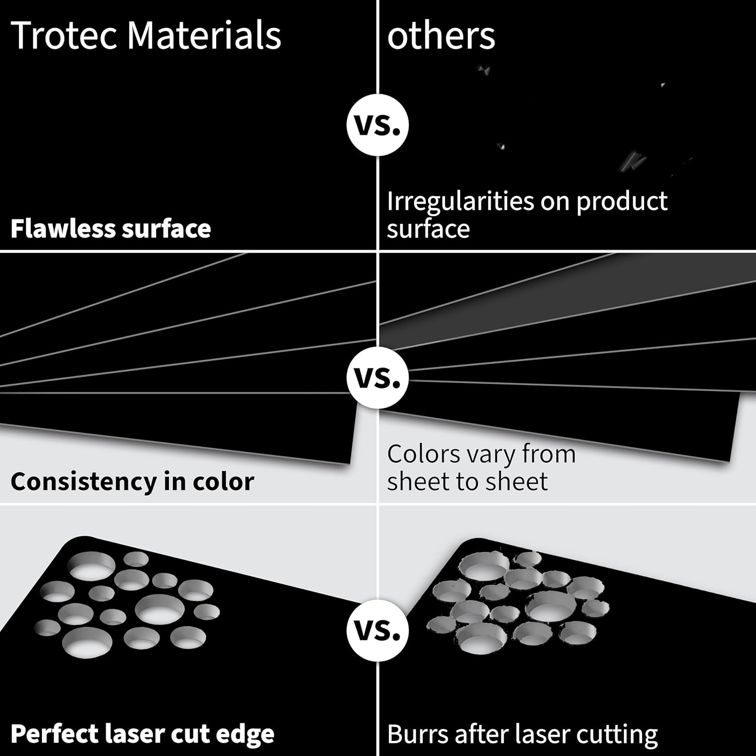 - Premium Quality: This two-ply laser engraving material has a thin top layer on a modified acrylic sheet for laser engraving core. Engraving reveals the contrasting core. It's tested for high-speed laser engraving material with smooth edges. Excellent durability with high impact, tensile, and flexural strength.