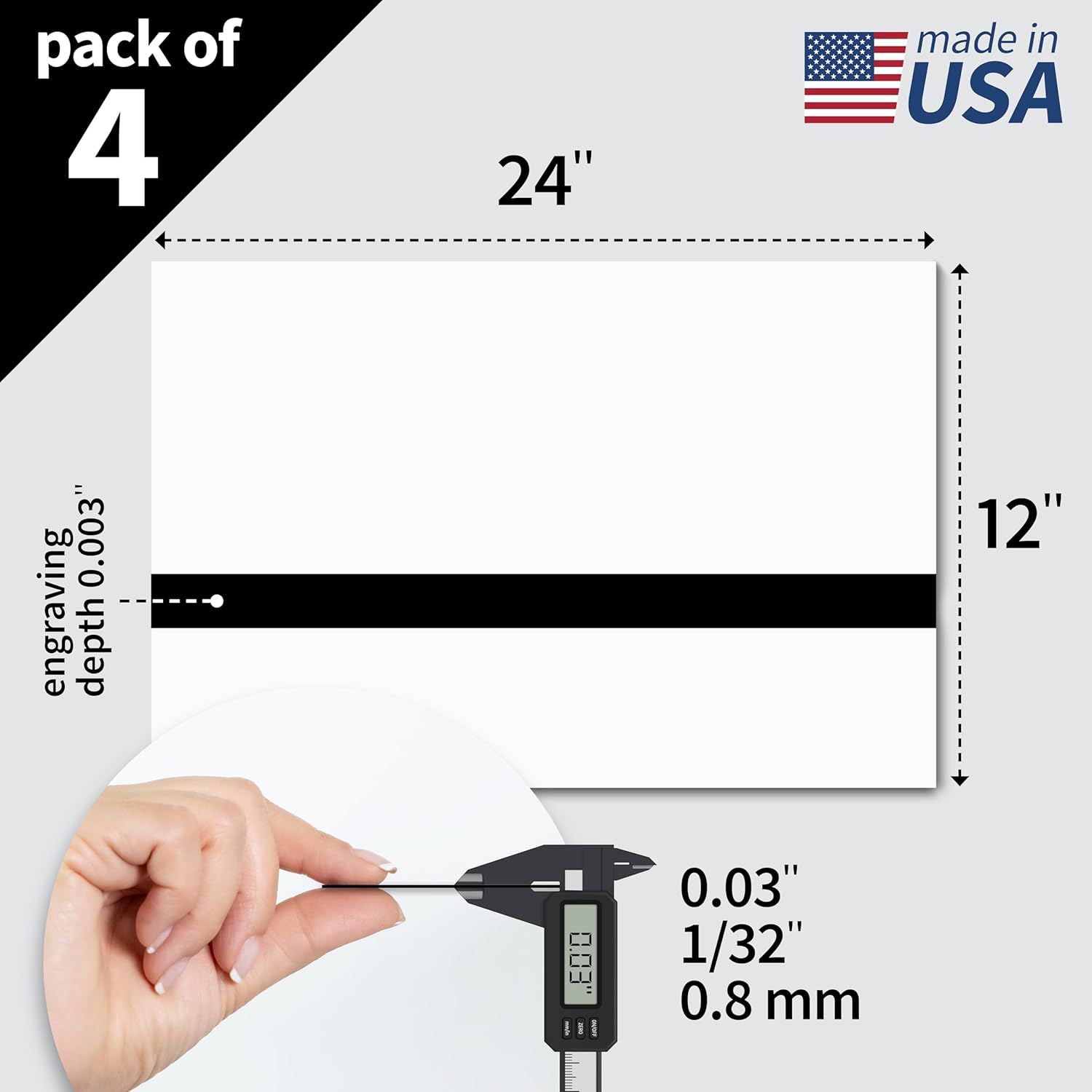Trotec TroLase | 12"x24"x1/32", 4 Pcs | White/Black | 2 Ply | Modified Acrylic | Laser Engraving Double Color Plastic Sheet | Engraving Blanks for Laser, Saw, Guillotine | Made in USA