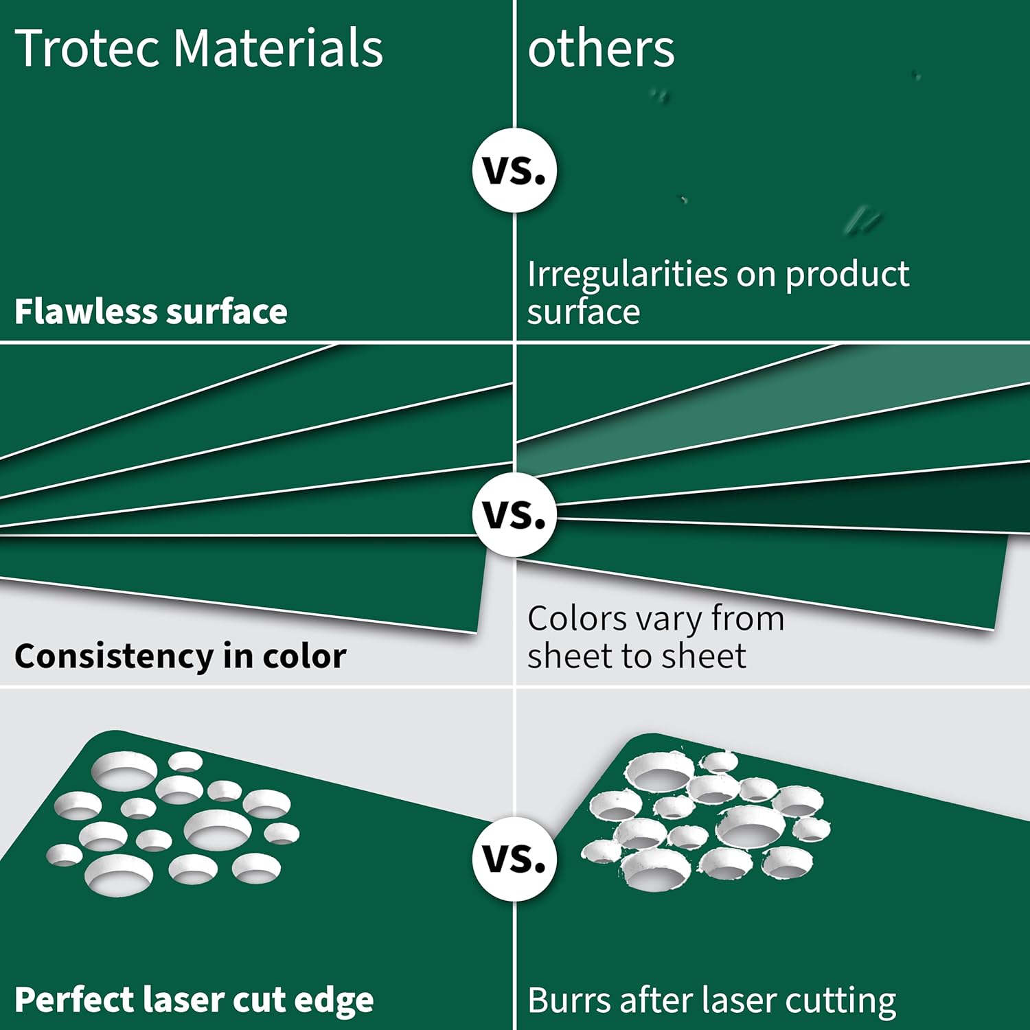 Trotec TroLase | 12"x24"x1/16", 4 Pcs | Dark Green/White | 2 Ply | Modified Acrylic | Laser Engraving Double Color Plastic Sheet | Engraving Blanks for Laser, Saw, Guillotine | Made in USA