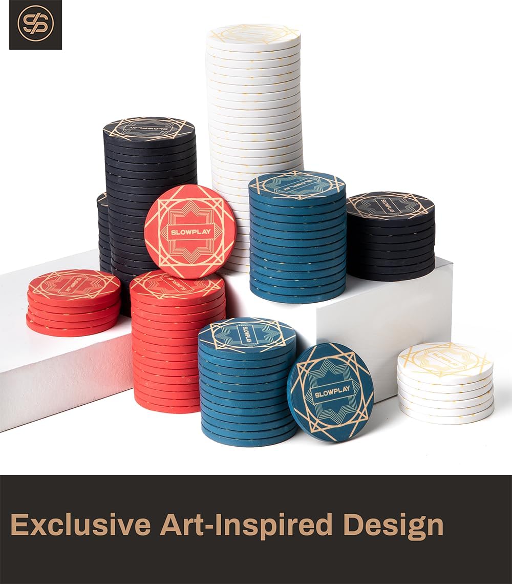 - Exquisite craftsmanship: These 43mm diameter chips are 12 grams in weight. Each is made with innovative ceramic composite material, making it more durable and allowing you to enjoy the free play. Slightly matte finish allows the ceramic chips to keep the smooth and gentle touch but also be able to stack and shuffle well. Not easy to slip even when you slide the stack across the table.