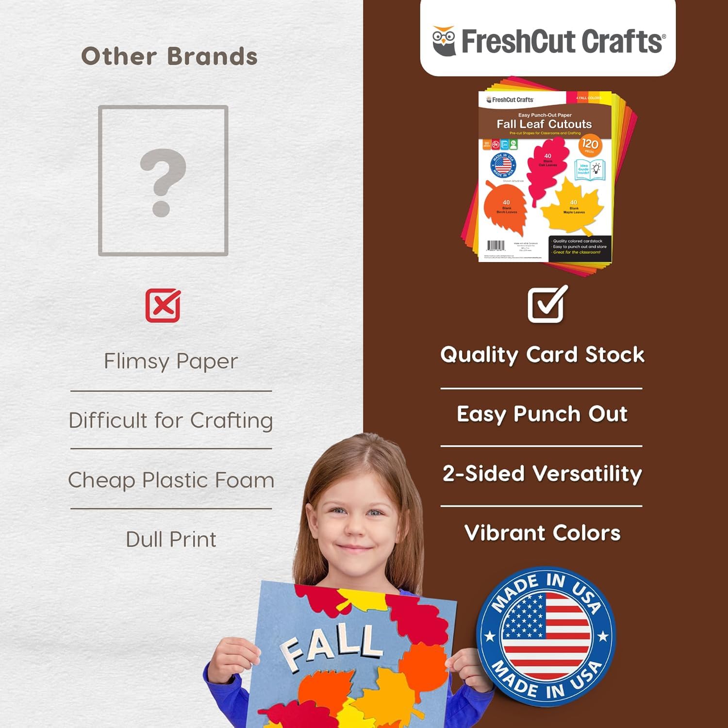 - FEEL-GOOD CRAFTING: At FreshCut Crafts, we're all about crafting with a conscience. Our products are not only about creativity but also about making a positive impact. Proudly family-made in the USA, we use high-quality, acid-free American-made paper that's perfect for preserving memories and creating lasting keepsakes. Our energy-efficient production processes are designed to minimize waste, ensuring that we leave a smaller footprint on the planet.