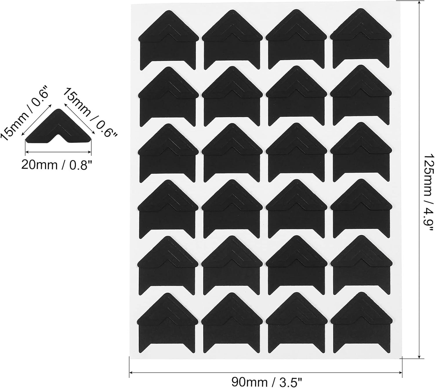 - Photo Corner Size: 15 x 15 x 20 mm / 0.6 x 0.6 x 0.8 inch; Overall Size: 125 x 90 mm / 4.9 x 3.5 inch (L*W); Color: Black