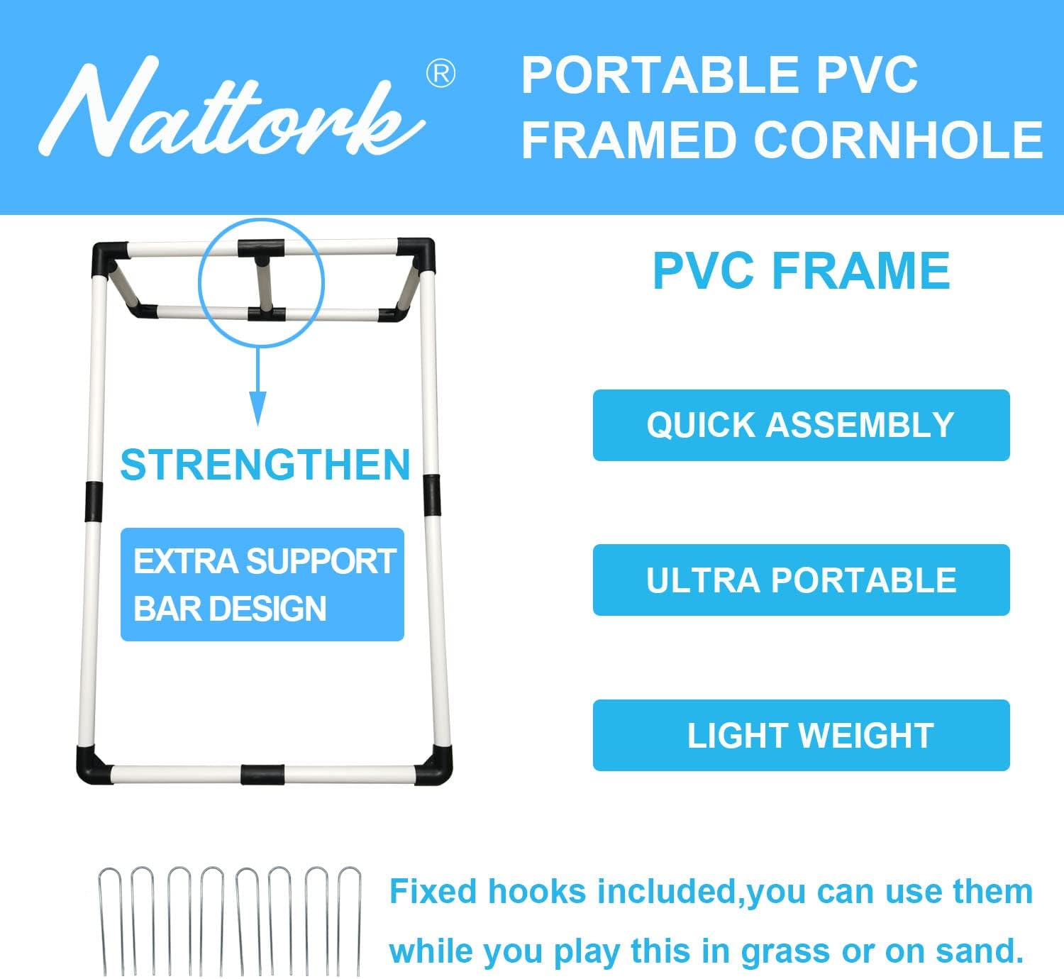 - 【PORTABLE CORNHOLE SET】 Exclusive innovative design, this Bean Bag Game can be assembled very quickly by flicking and sticking and stored very easily by tearing and stacking with a small footprint and meet every need in the portable travel.