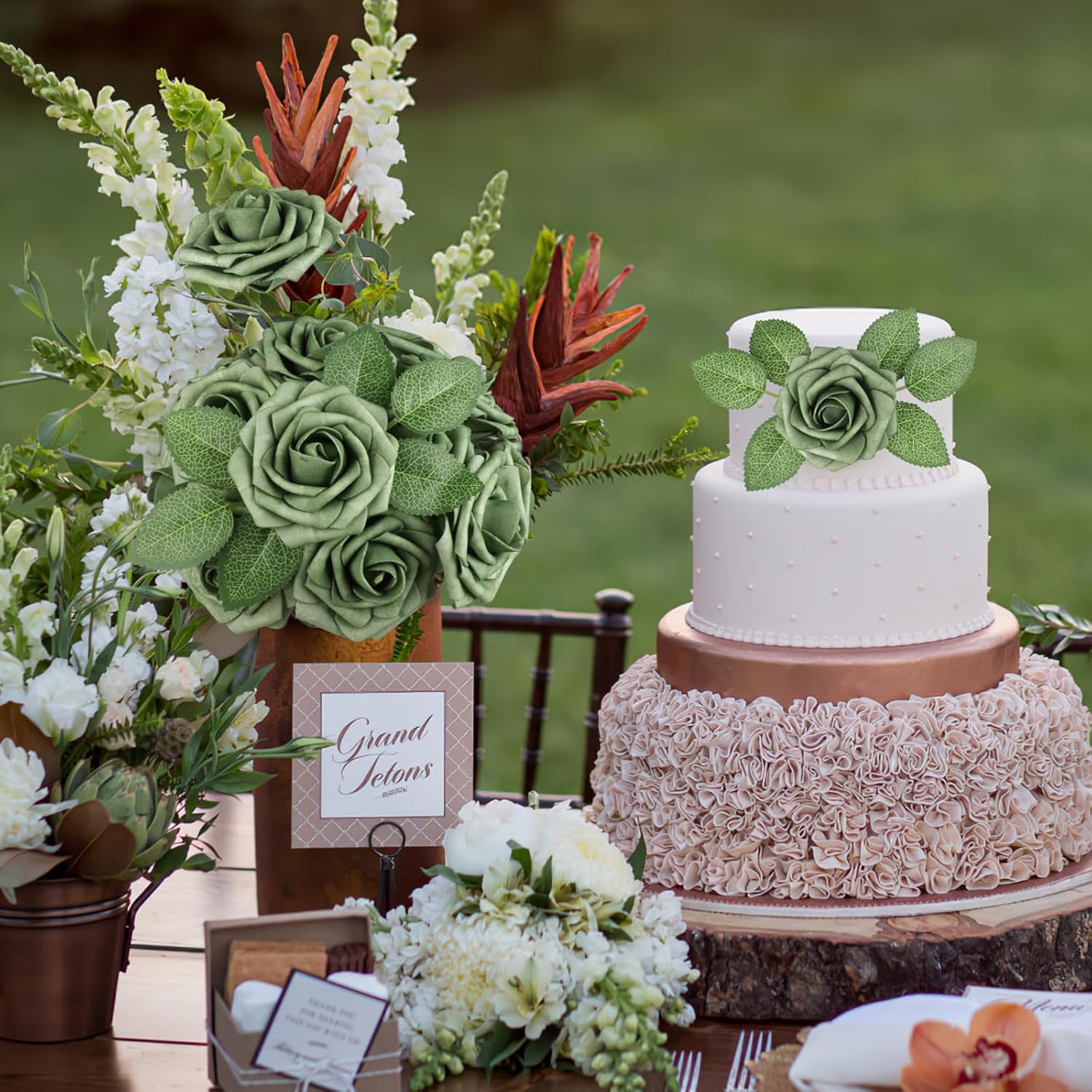 AmyHomie Artificial Flowers Green Rose 25pcs Real Looking Fake Roses w/Stem for DIY Wedding Bouquets Centerpieces Arrangements Party Baby Shower Home Decorations