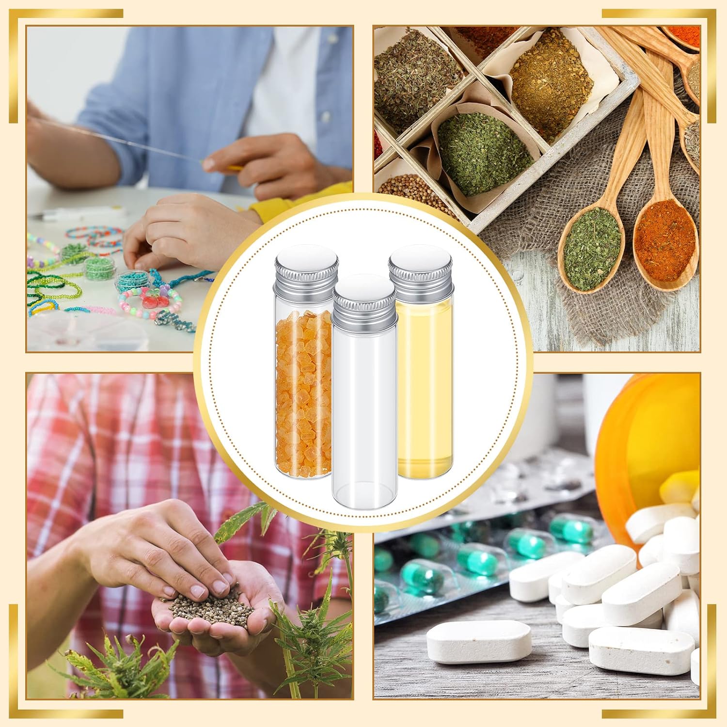 - Where to Use: the tiny bottles with screw top are useful, suitable for so many situations, such as the spice, seeds, perfume, jewelry and more can be contained inside, which can make you to save your space, and make your places tidier
