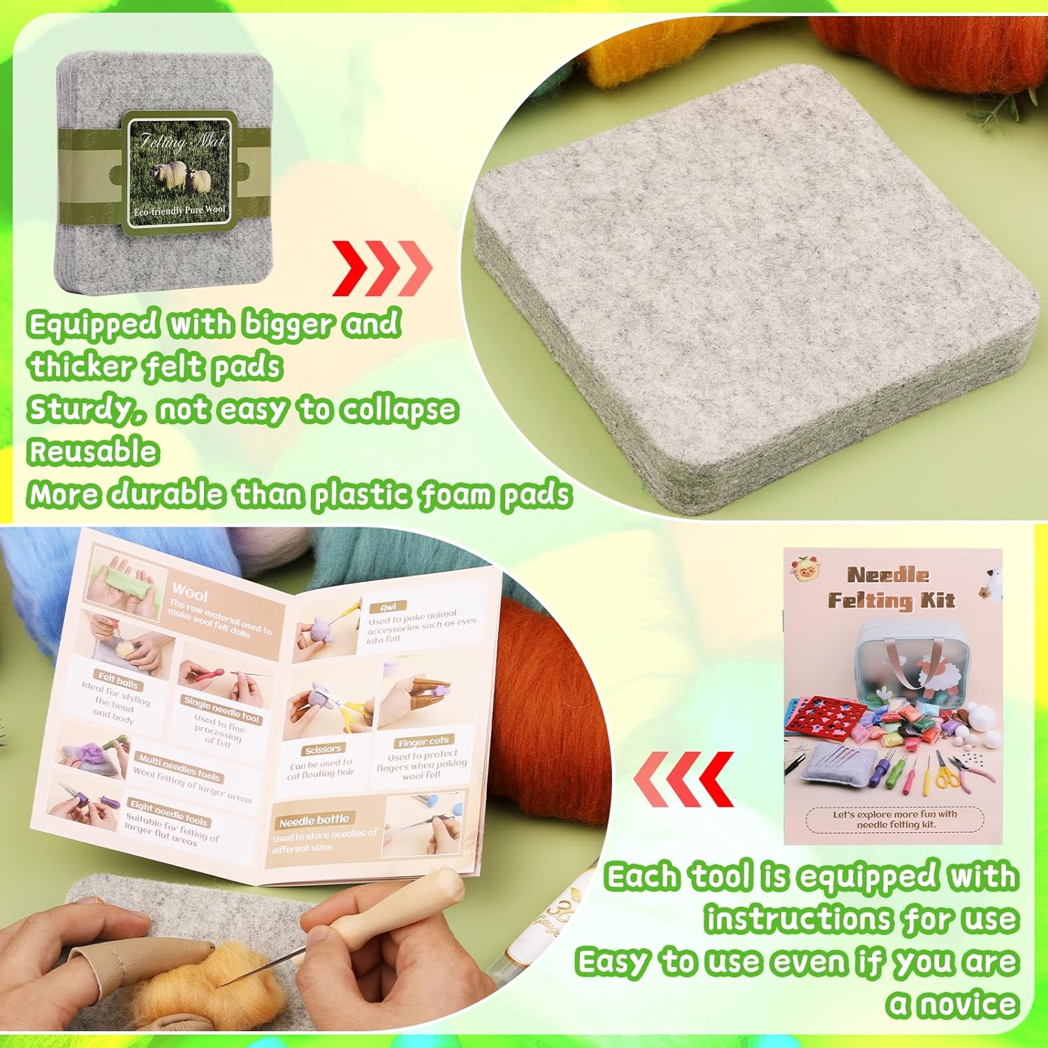 - Complete Needle Felting Set: Our felting kit has 24 beautiful colors felting wool roving, and basic needle felting tool kits. We also provide a set of instruction manual for wool tools, which can help you quickly learn to use and make your favorite wool handcrafts